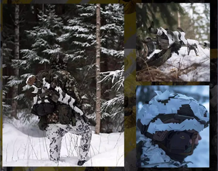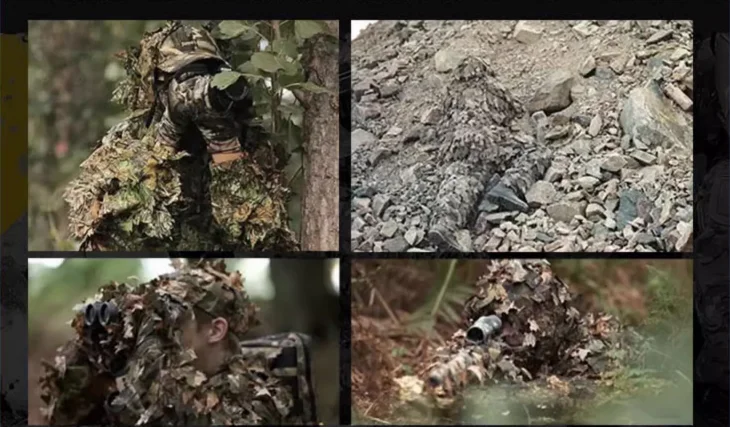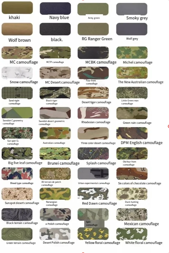 El kit Camo Scrim le permite camuflar rápidamente su equipo y adaptarse rápidamente a su entorno, con cada kit de camuflaje que consta de 15 tiras del mismo color. Estas tiras de camuflaje están hechas de las propias telas de Rongsheng, y hay cientos de colores de camuflaje diferentes disponibles en el país y en el extranjero.