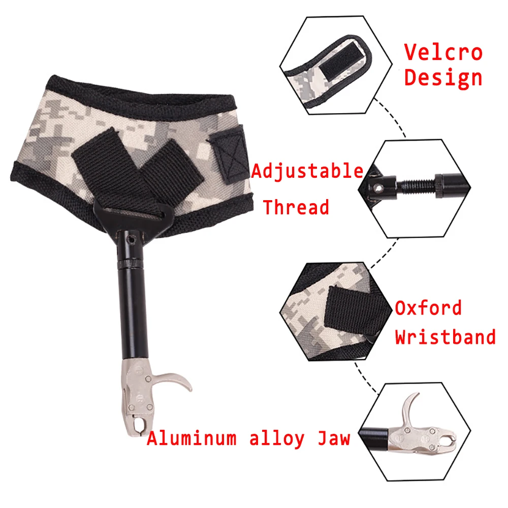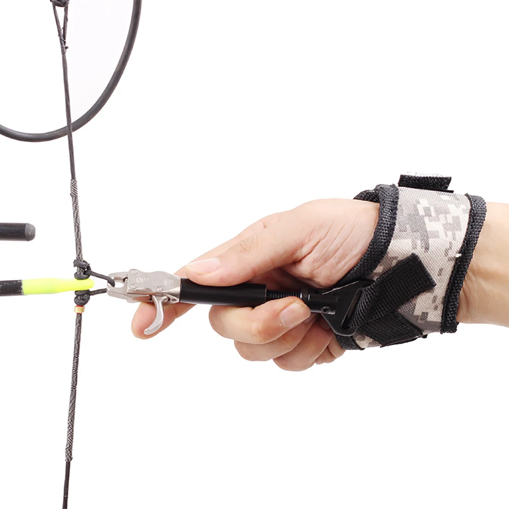 Tiro con arco Camo Longitud de rotación de 360 grados Correa de muñeca ajustable Cierre automático Liberación de arco para caza Tiro Arco compuesto y accesorio de flecha