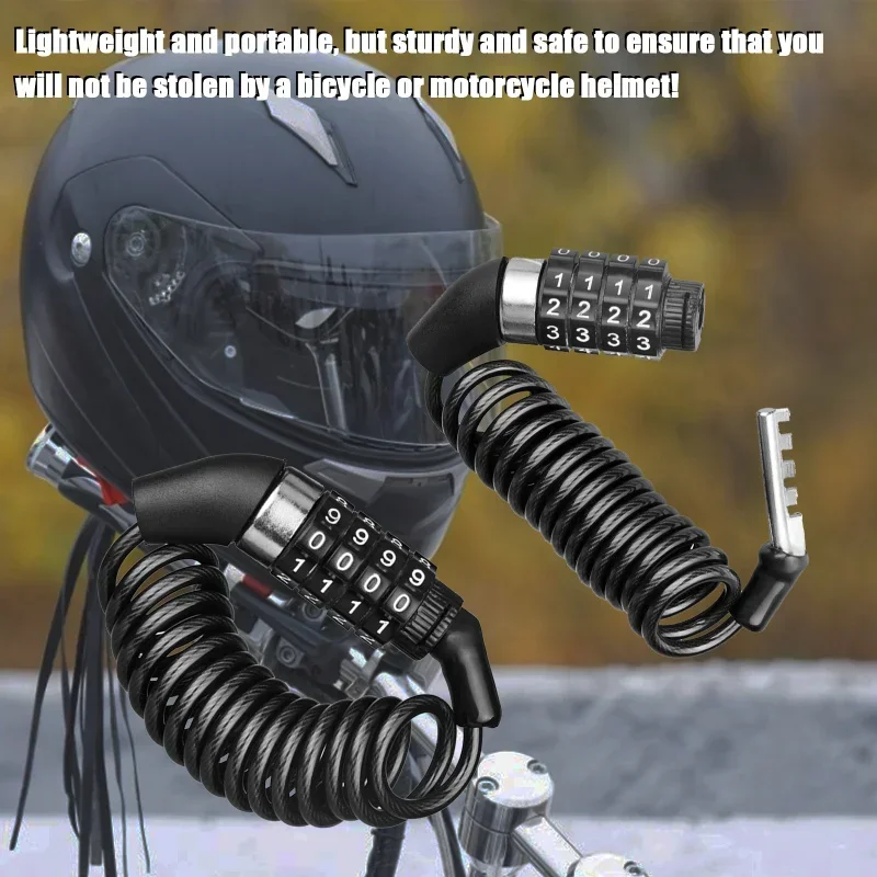 Cadena de bloqueo de casco duradera, combinación de contraseña de 4 dígitos, pespunte de bloqueo de Cable antirrobo portátil para bicicleta y motocicleta