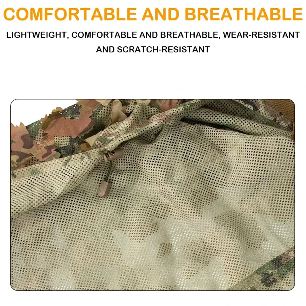 1. Malla ligera: hecho de algodón guino y poliéster, este traje ghillie es cómodo y resistente al desgaste.