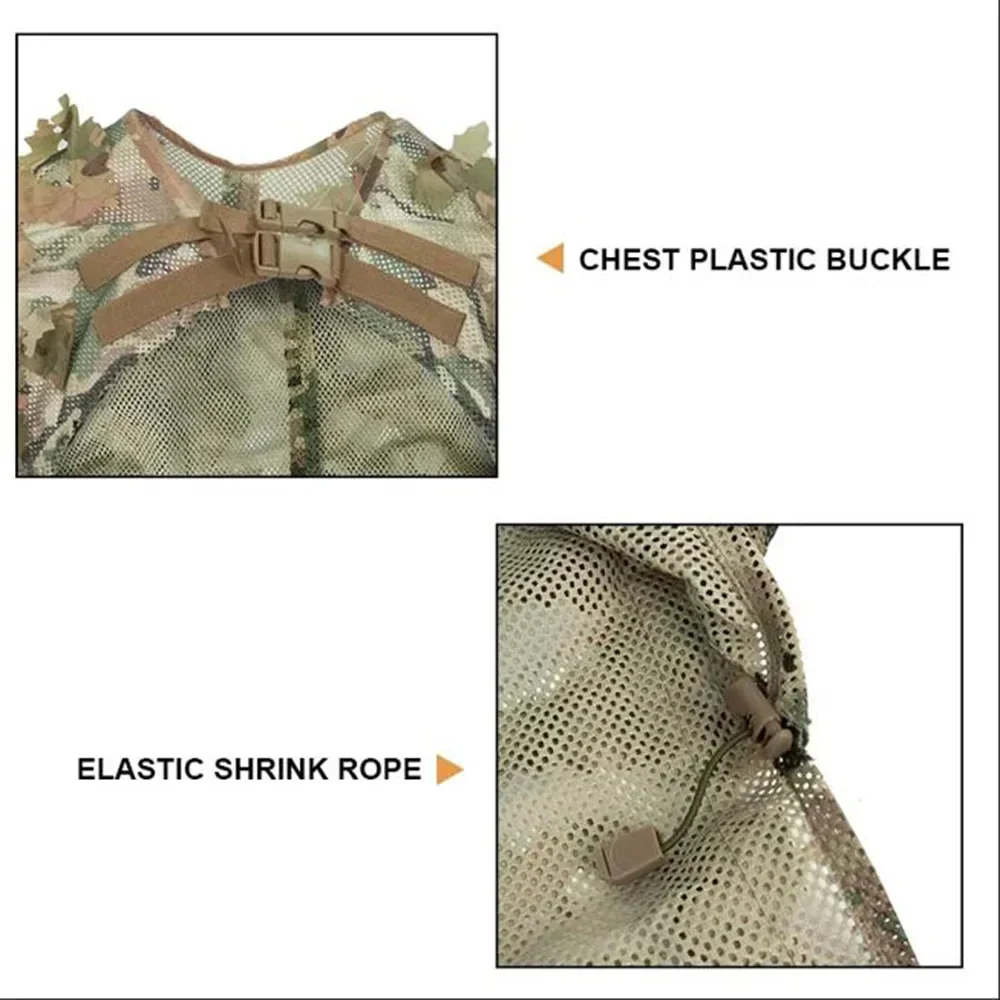 3. Diseño de hojas realista: este traje ghillie tiene un diseño vívido de hojas muertas que imita el entorno natural.