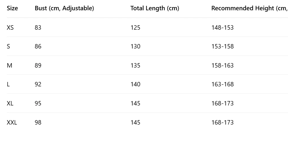 La circunferencia de la falda es de aproximadamente 2,6 metros.