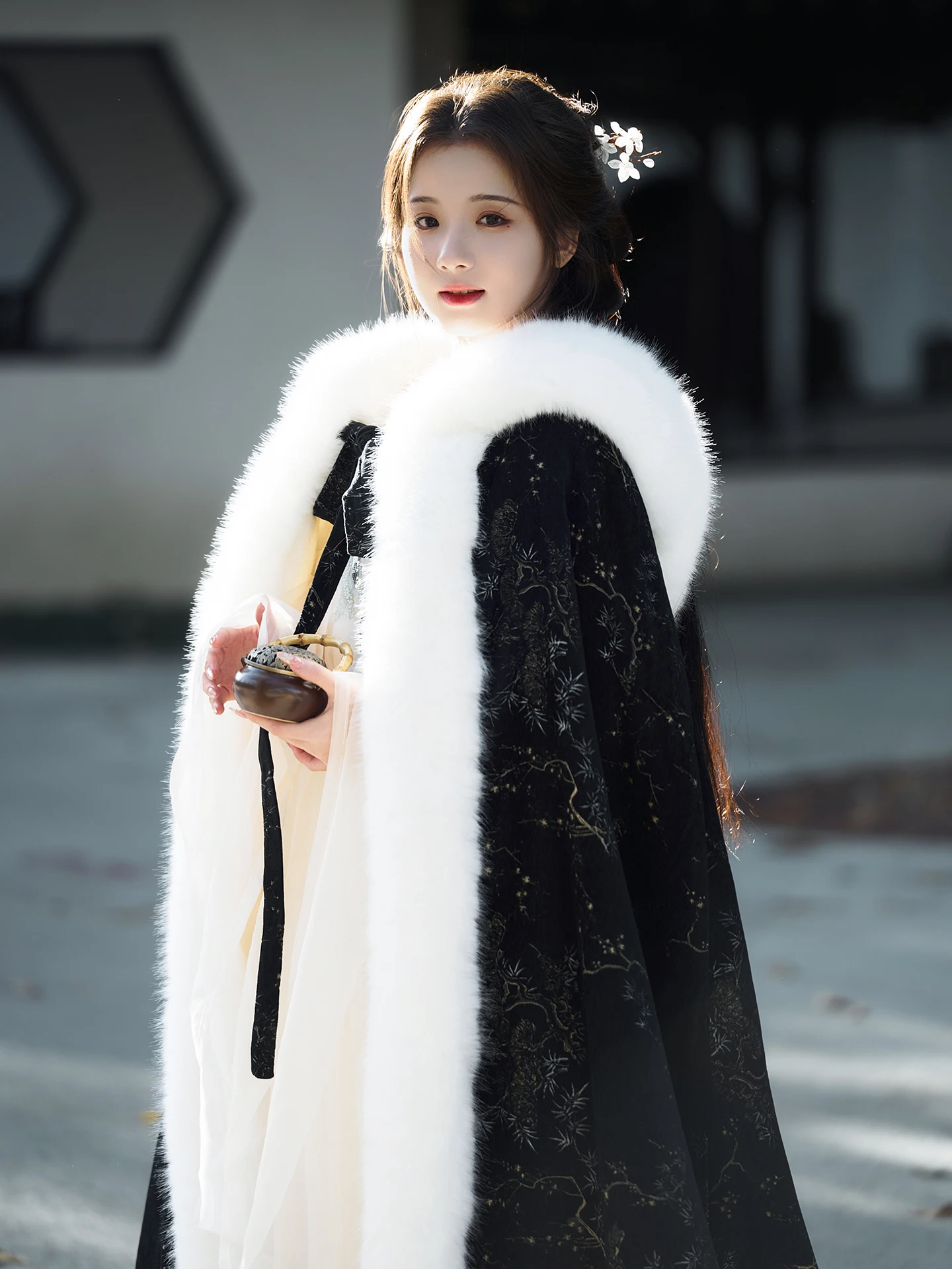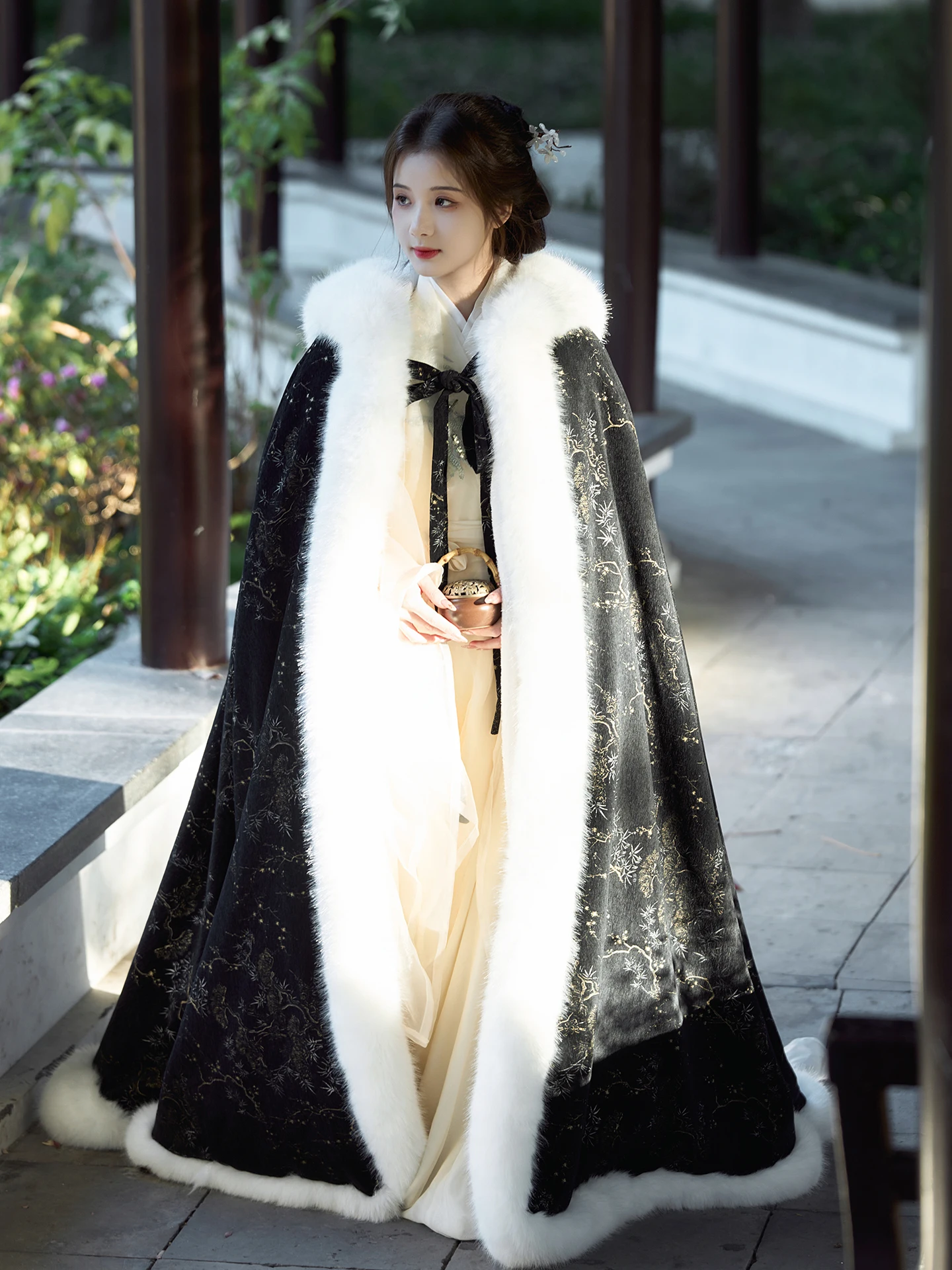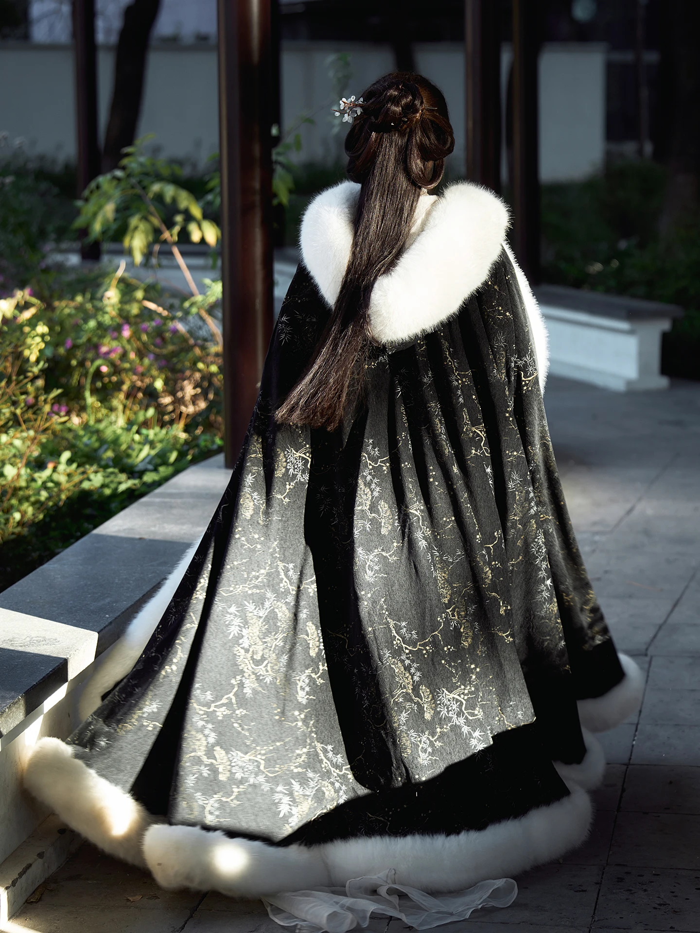 Capa gótica con capucha Hanfu forrada de lana capa larga fantasía Medieval Cosplay fotografía rendimiento