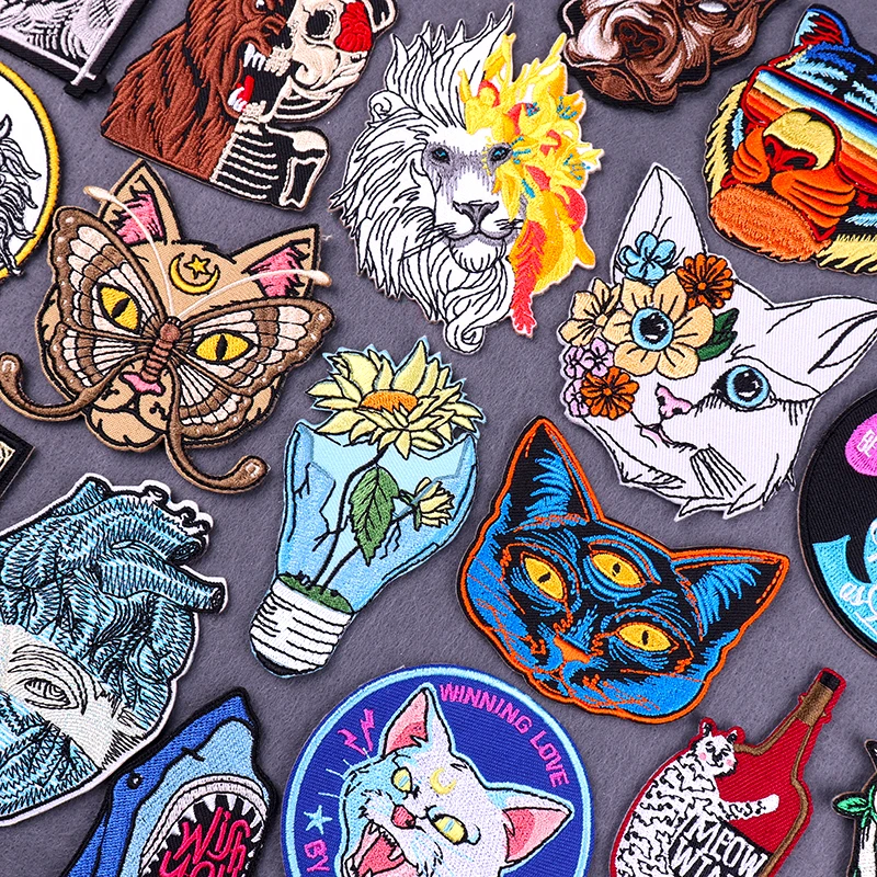 Cara de León y gato con flor, parches termoadhesivos para ropa, bordado de animales, pegatinas de costura para planchar DIY