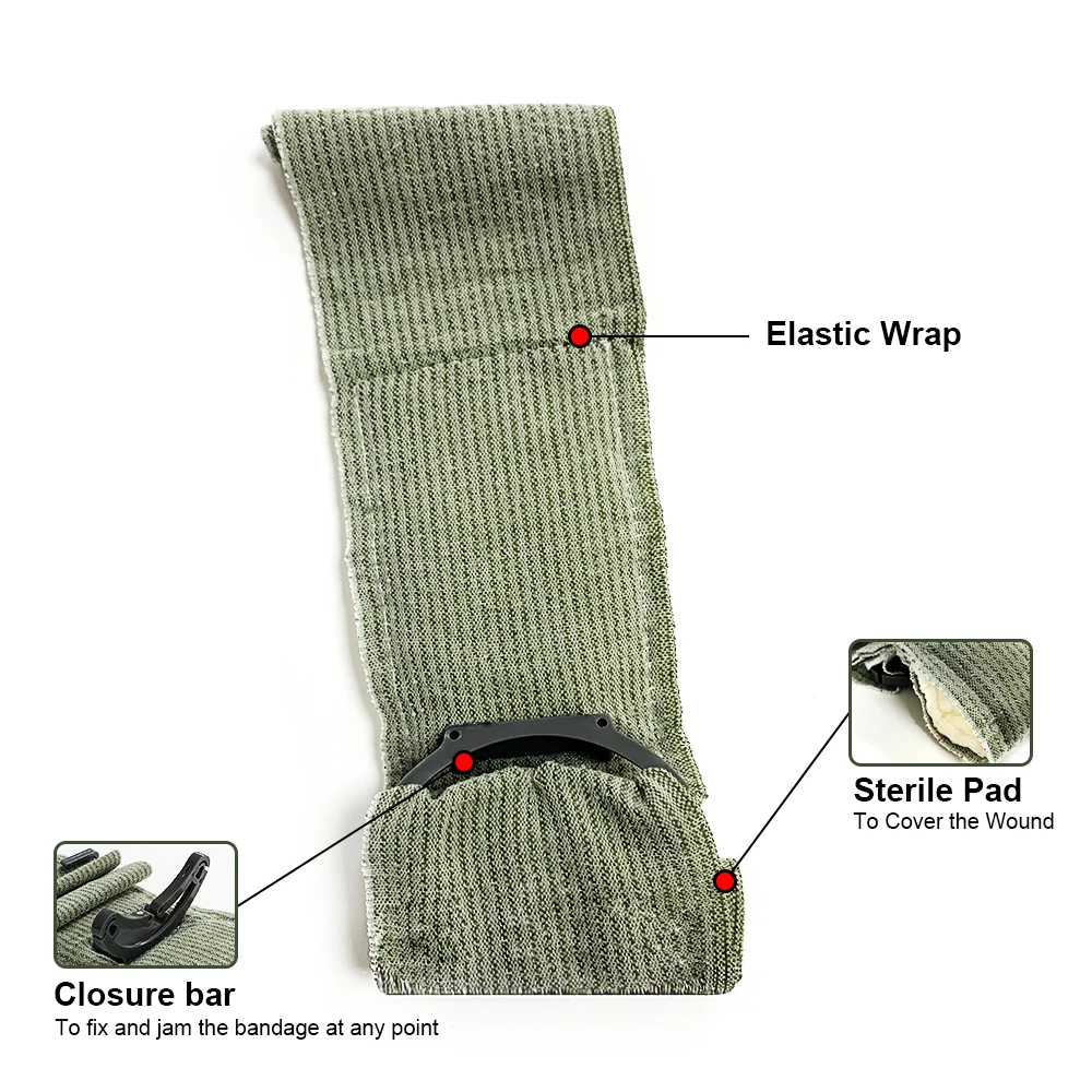 • Banda de Israel :La banda israeli incluyida en el kit es conocida por su eficacia y fiabilidad en las situaciones de mayor demanda de atención médica.