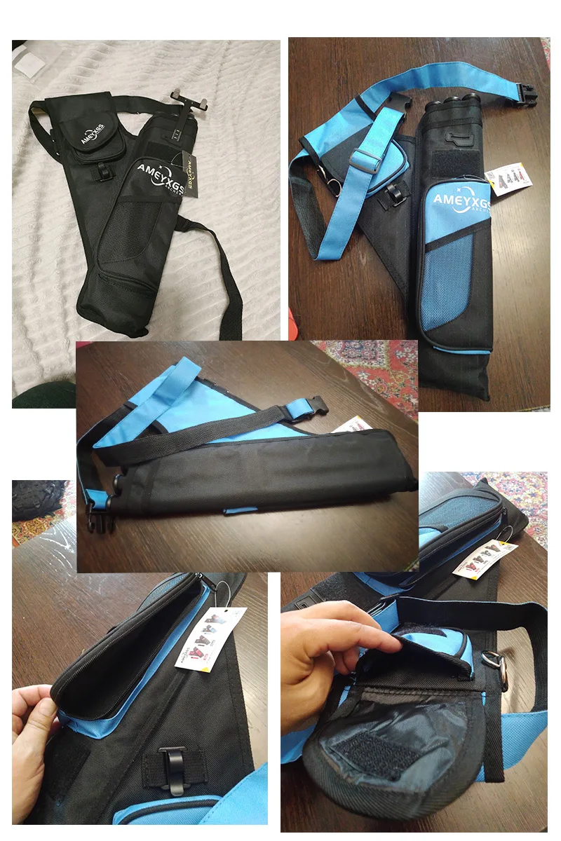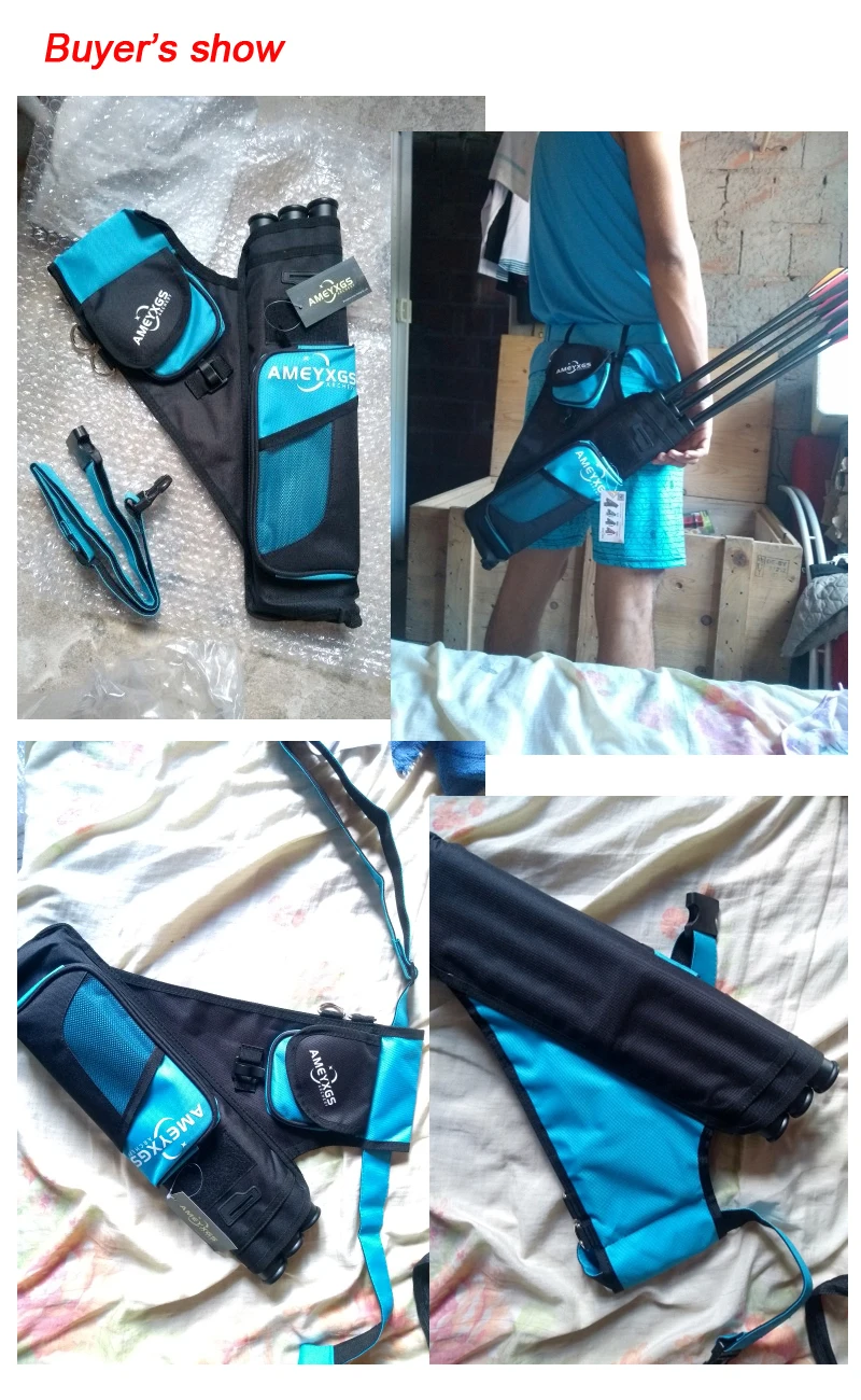 4. El carcaj de tres tubos se puede clasificar para acomodar flechas de diferentes materiales, que desempeñan un papel protector y la hebilla del cinturón se puede ajustar.