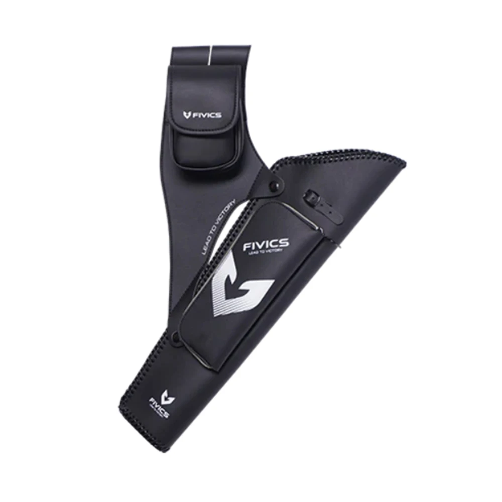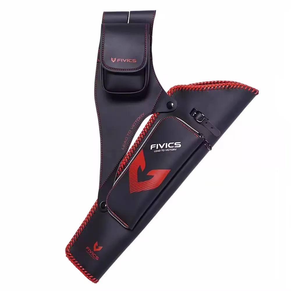 Carcaj orientado hacia adelante elegantemente elaborado, fabricado con cuero artificial.