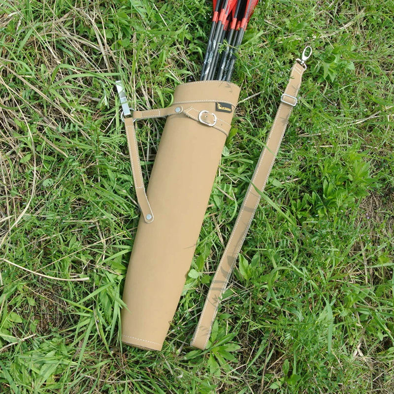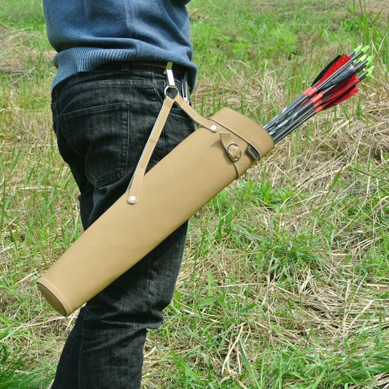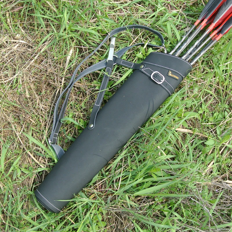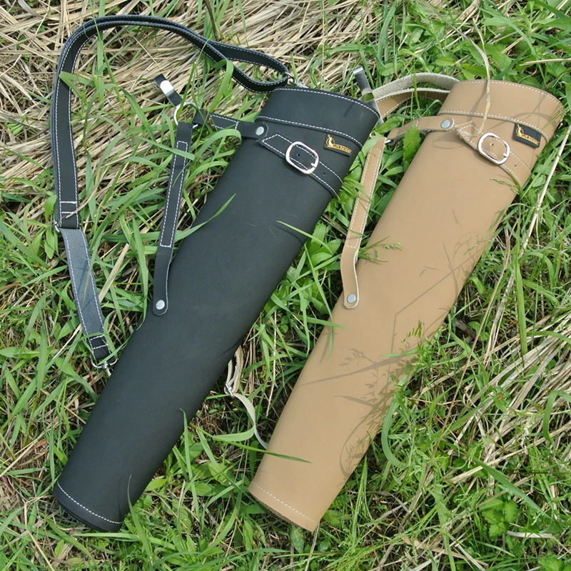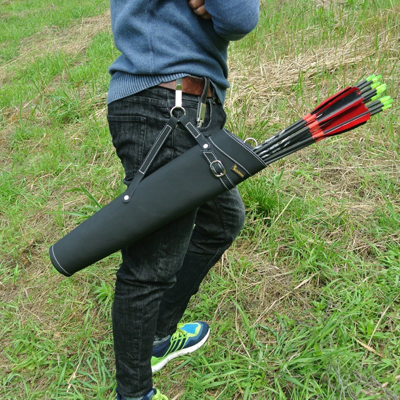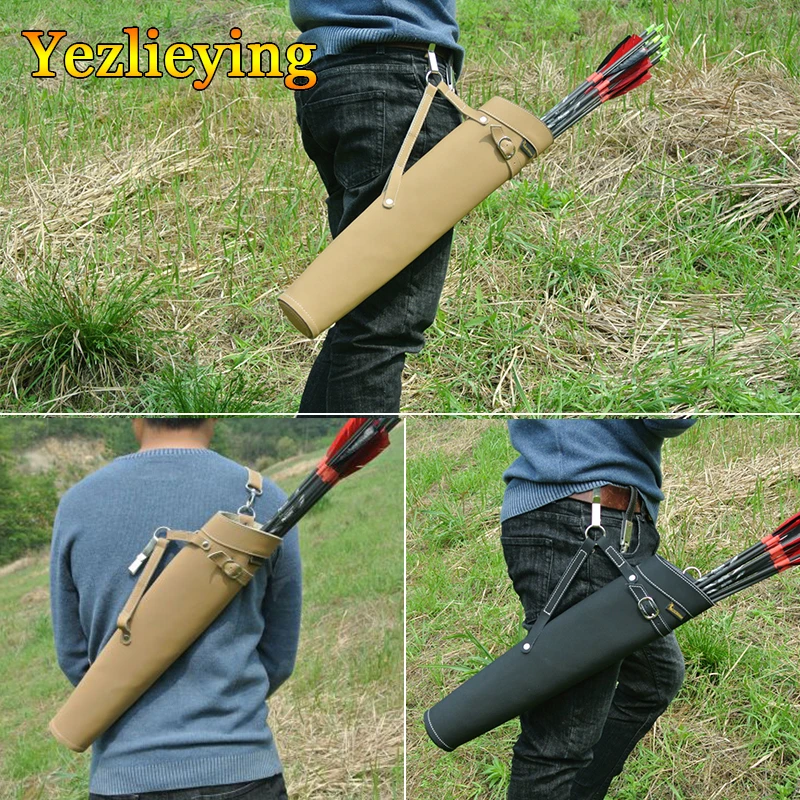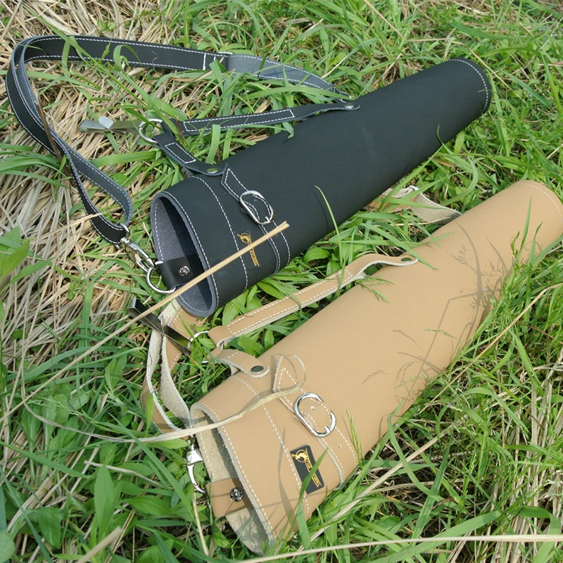 Tiro con arco caza 52*13cm carcajero de flecha de cuero puro en Color negro/amarillo diseño de hombro bolsa de flecha colapso de la cintura