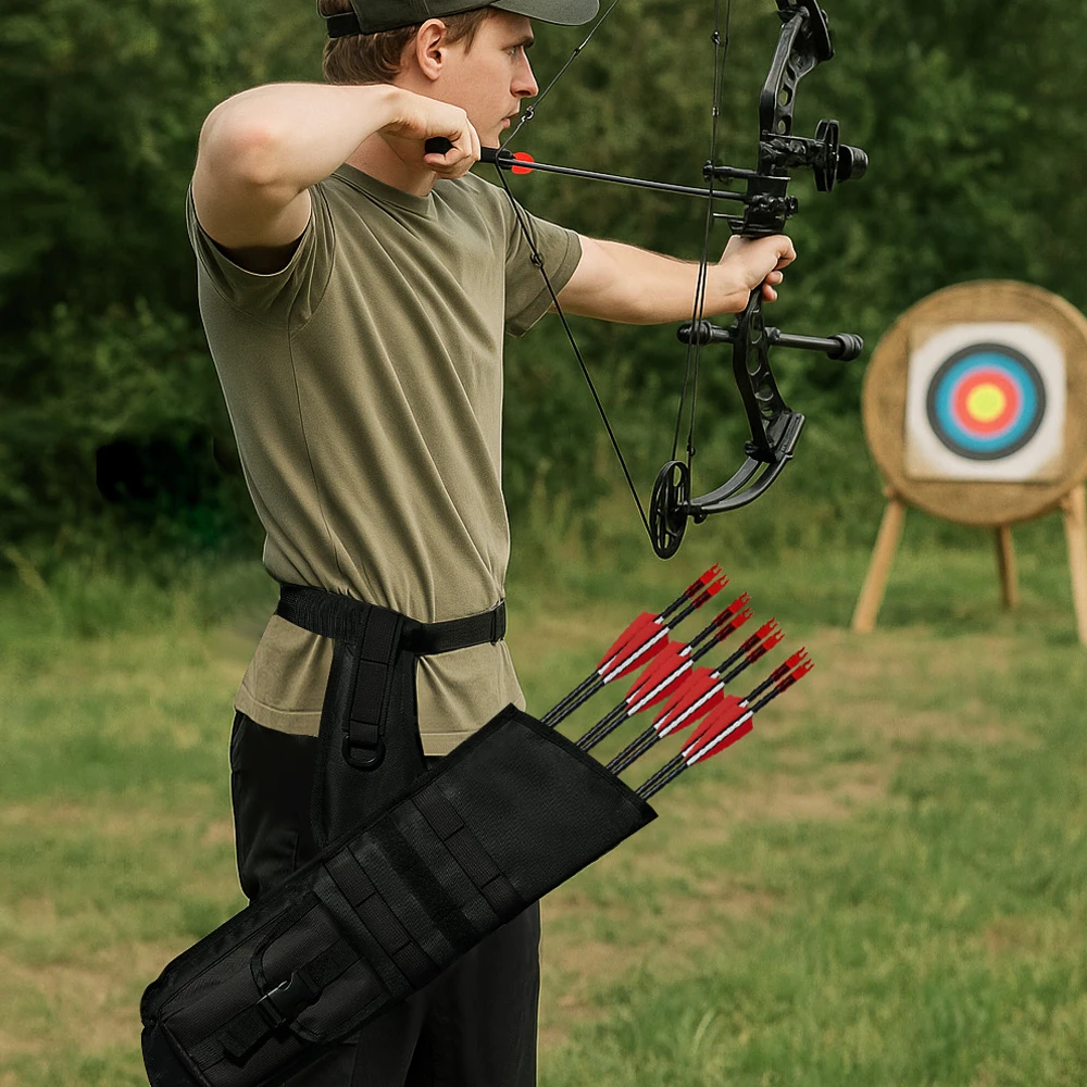 La correa de cintura personalizable garantiza un ajuste cómodo y estable para usuarios de distintos tipos de cuerpo, evitando el desplazamiento de las flechas durante el movimiento.