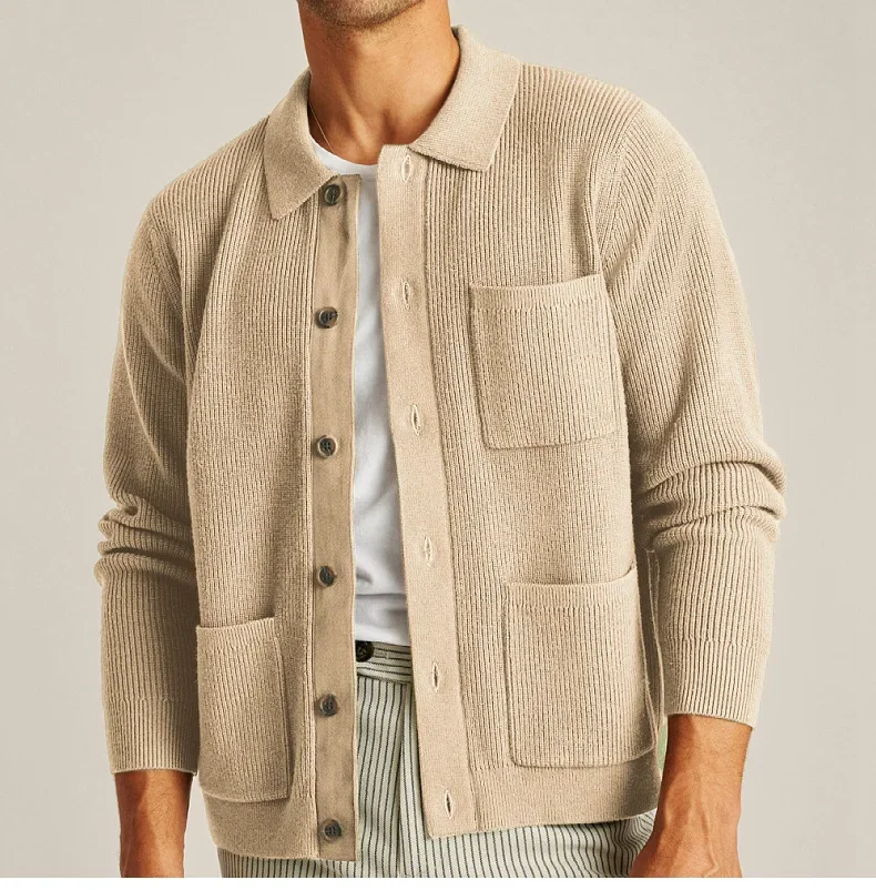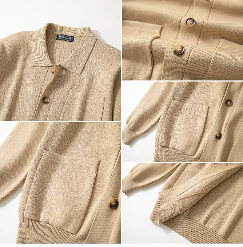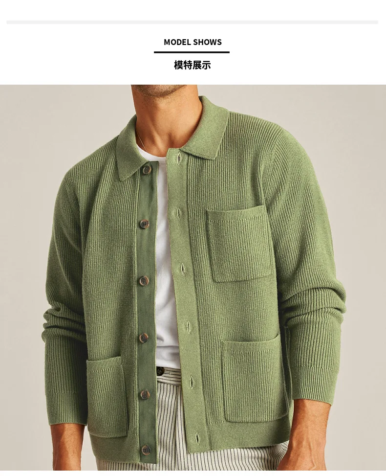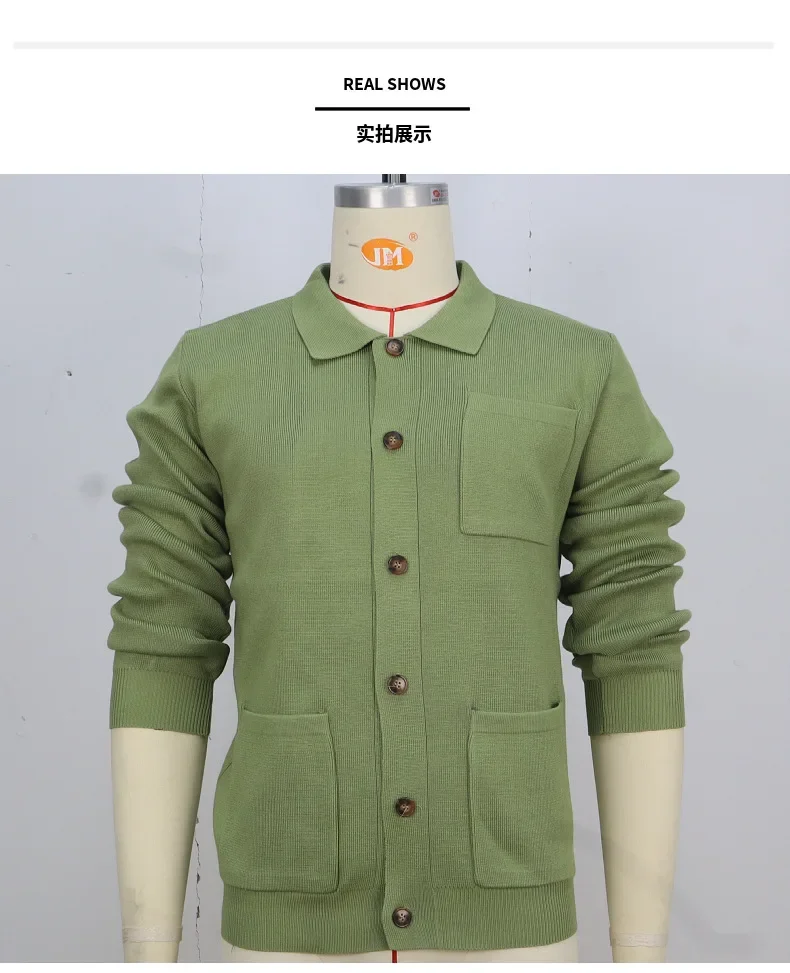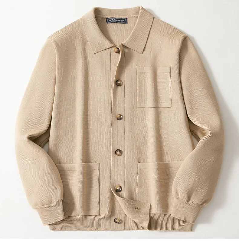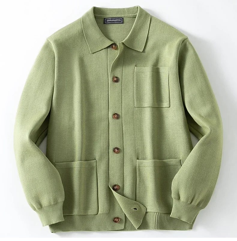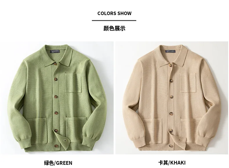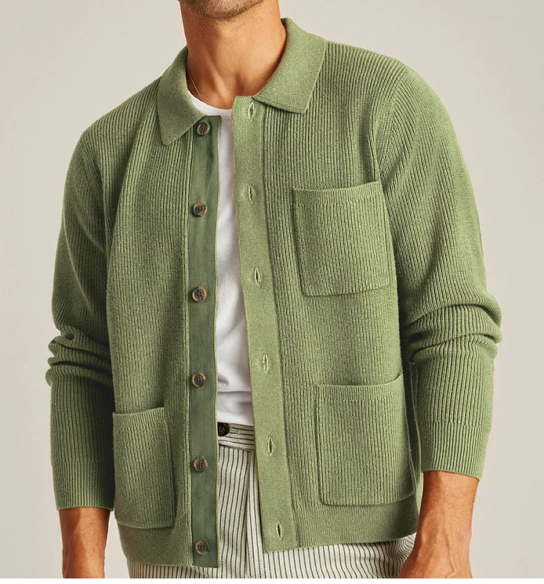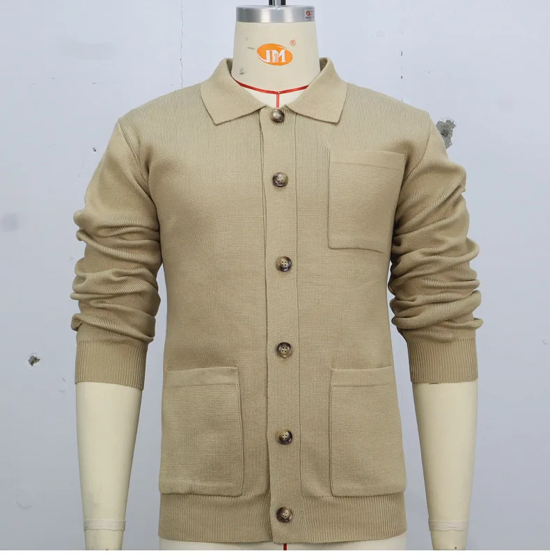 Cárdigan para hombre, suéteres, abrigo con cuello vuelto, camisa de punto liso, abrigos informales con empalme de un solo pecho, punto abierto, Otoño Invierno