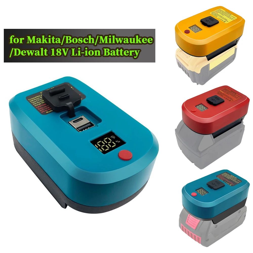 Cargador adaptador para batería de iones de litio Makita/Bosch/Milwaukee/Dewalt de 18V con cargador de entrada y salida USB y tipo C de carga rápida