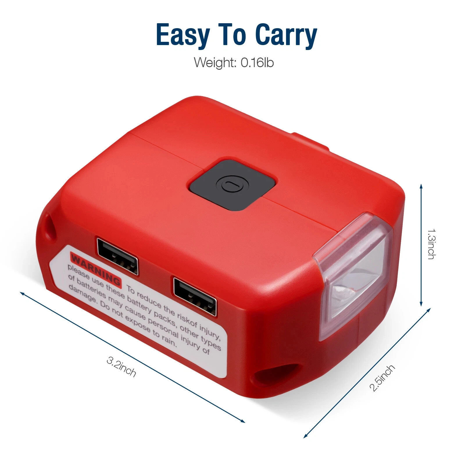 Para características del adaptador de batería M12Compatibilidad: Para Milwaukee 49-24-2310 48-59-1201.Nuestro adaptador de batería compacto para Milwaukee de 12 V es compatible con cualquier salida USB.El adaptador de batería de litio Milwaukee proporciona una carga rápida y portátil para sus dispositivos electrónicos.