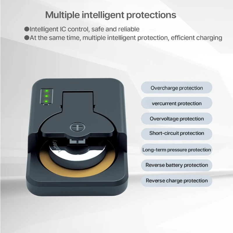 Características:OotdtyMultifuncionalidad: admite la carga simultánea de baterías de botón de diferentes modelos, como LIR2032 y 2450, y puede satisfacer la demanda de carga de 4,20 V.