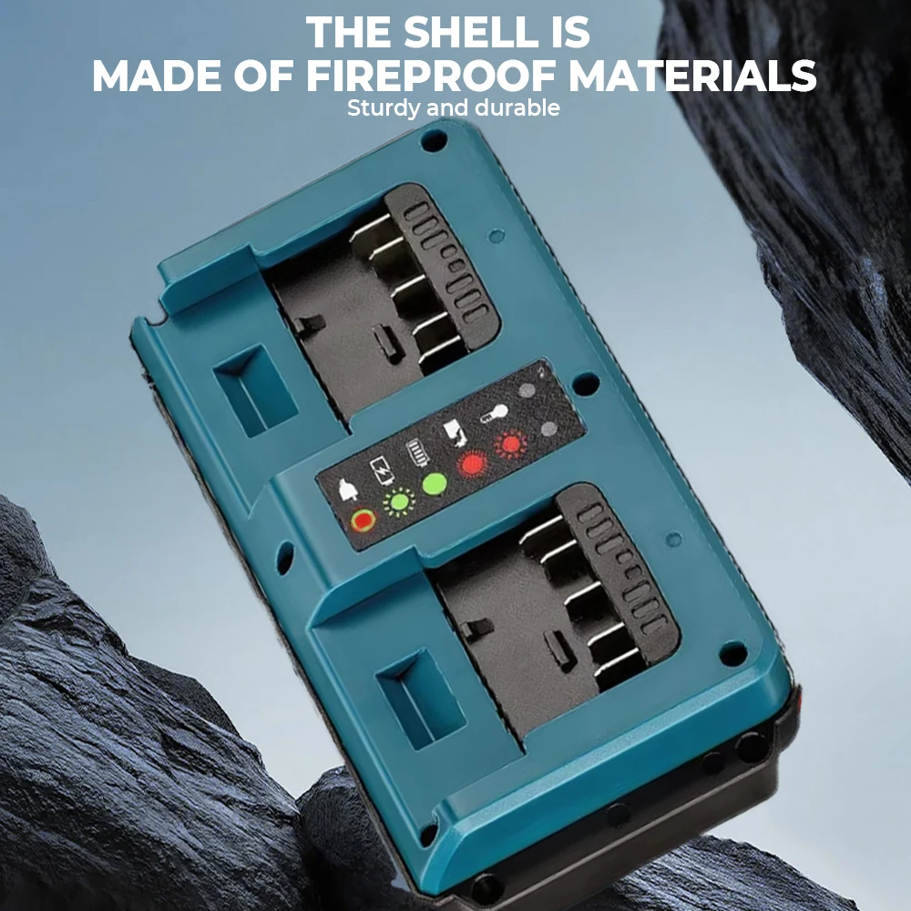 •Puede cargar de forma independiente dos baterías de 14,4 V o 18 V al mismo tiempo Carga dual inteligente, protección contra sobrecarga