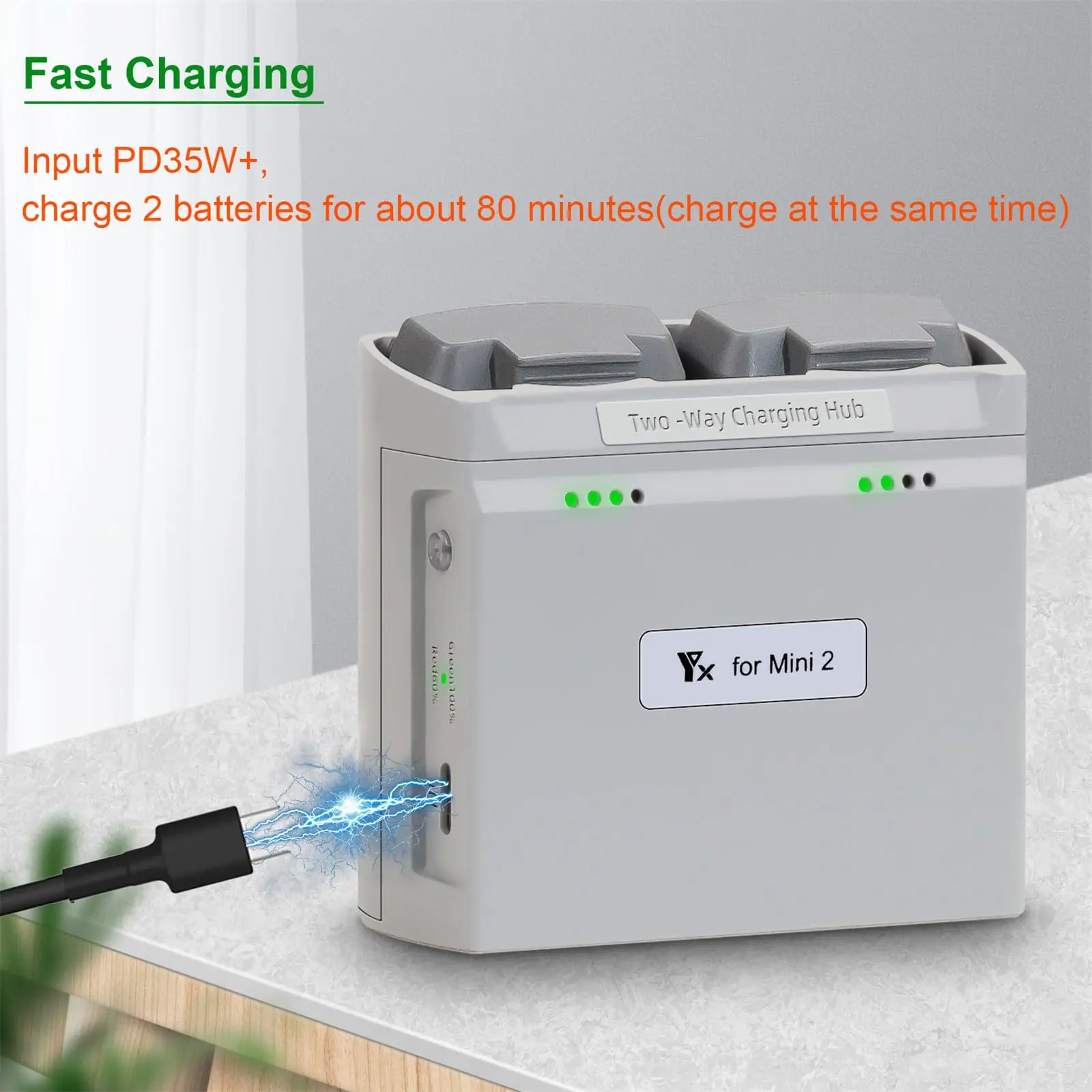 • 【TIEMPO DE CARGA】: tardará unos 60 minutos en cargar una mini batería 2 con entrada de 25 W o superior, unos 80 minutos para dos mini 2 baterías con entrada de 35 W o superior;