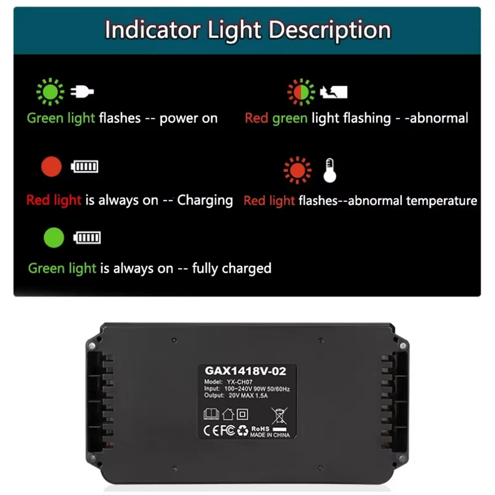 Conveniente y eficiente: fácil de transportar al aire libre o en sitios de construcción.Diseño de orificio de montaje inferior para un fácil montaje en pared.El tamaño compacto mantiene organizado su banco de trabajo o espacio de trabajo.El soporte de carga cuenta con rejillas de ventilación para ayudar a mantener la batería fresca mientras se carga.Logre una carga sin preocupaciones y maximice la eficiencia del trabajo.