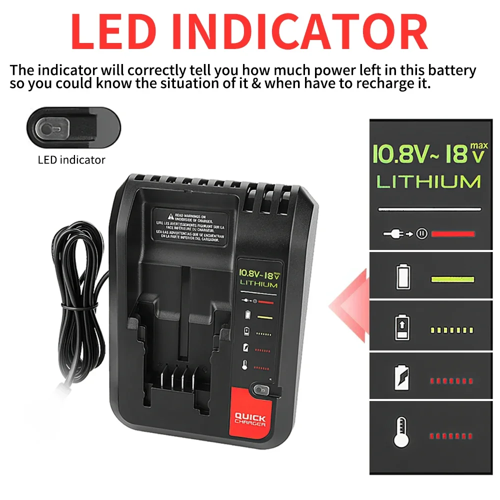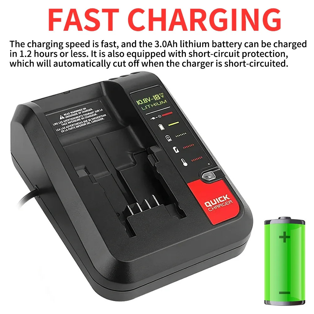 3. Adecuado para cargador de batería de litio Black & Decker/Bupa/Stanley 10,8 V-18V 2A
