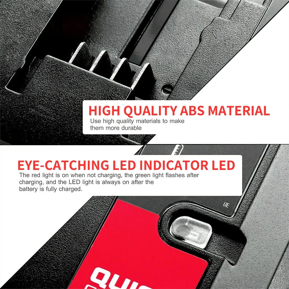 El cargador inteligente 10,8 V-18V 2A tiene pantalla de energía, protección de control de temperatura, protección fuera de fecha, detección inteligente de una sola batería (busque detección de una sola batería, las nuevas regulaciones de la UE deben la detección de una sola batería) proteger eficazmente cada batería.