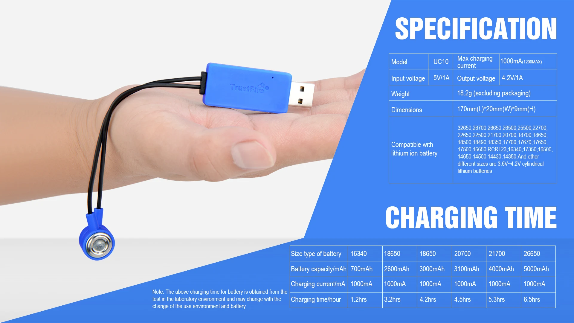 TRUSTFIRE UC10 cargador magnético de carga y descarga para baterías recargables de iones de litio