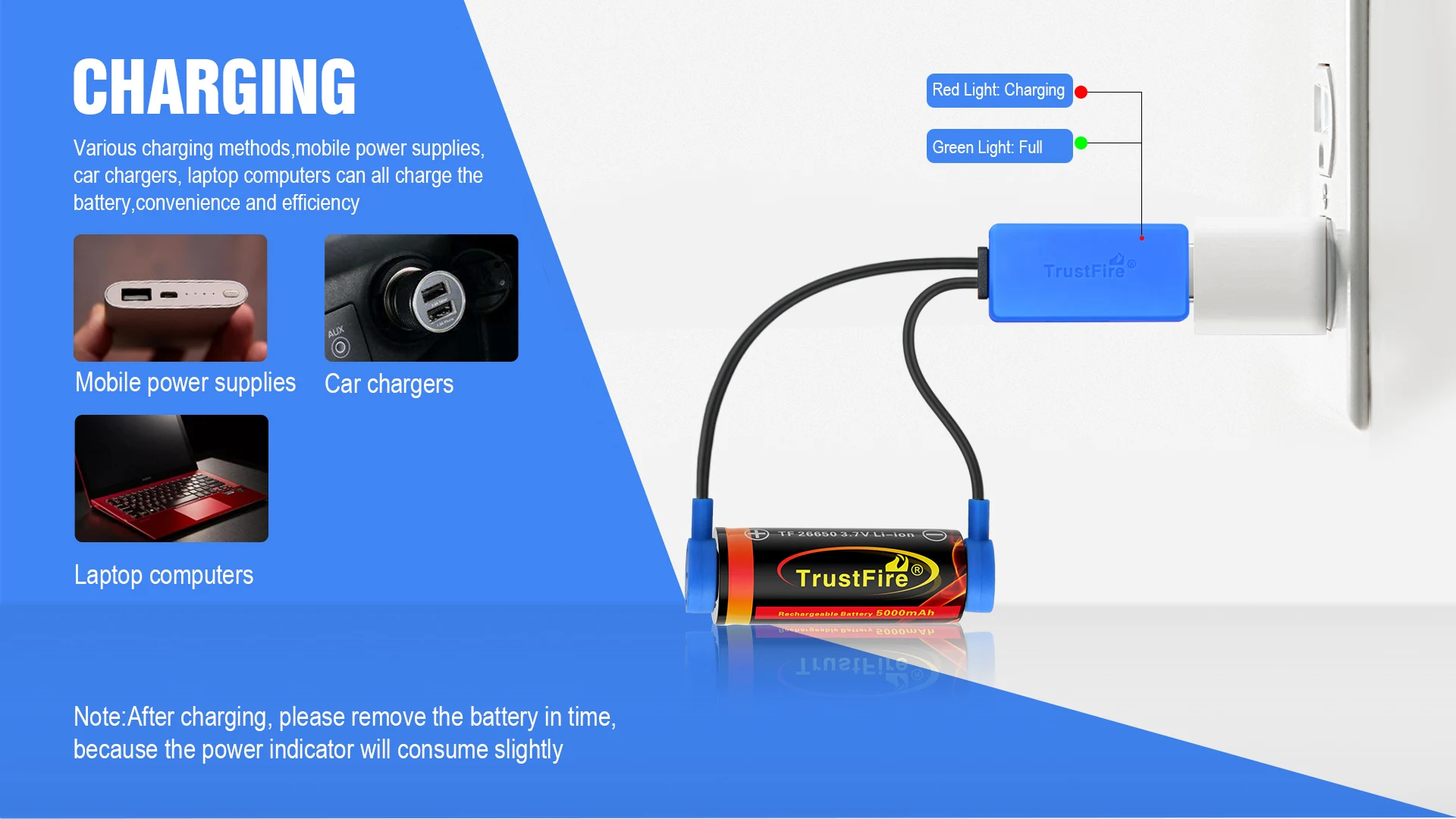 Con varios métodos de carga, fuentes de alimentación móviles, cargadores de automóvil y computadoras portátiles, todos pueden cargar la batería, comodidad y eficiencia.