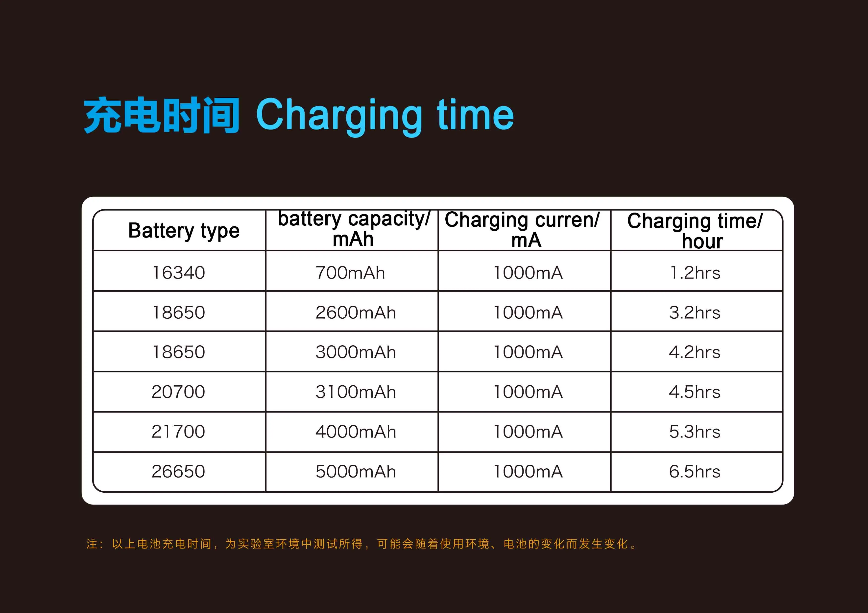 Puede cargar varias baterías de iones de litio con voltajes que oscilan entre 3,6 V y 4,2 V para 32650,26700,26650,26500,25500,22700,22650,22500,21700,20700,18650,18500,18490,18350,