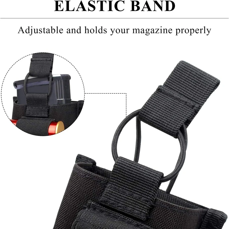 【CORDÓN ELÁSTICA】 La banda elástica puede ajustarse a la tensión y sujetará los cargadores de forma segura y de buena calidad.