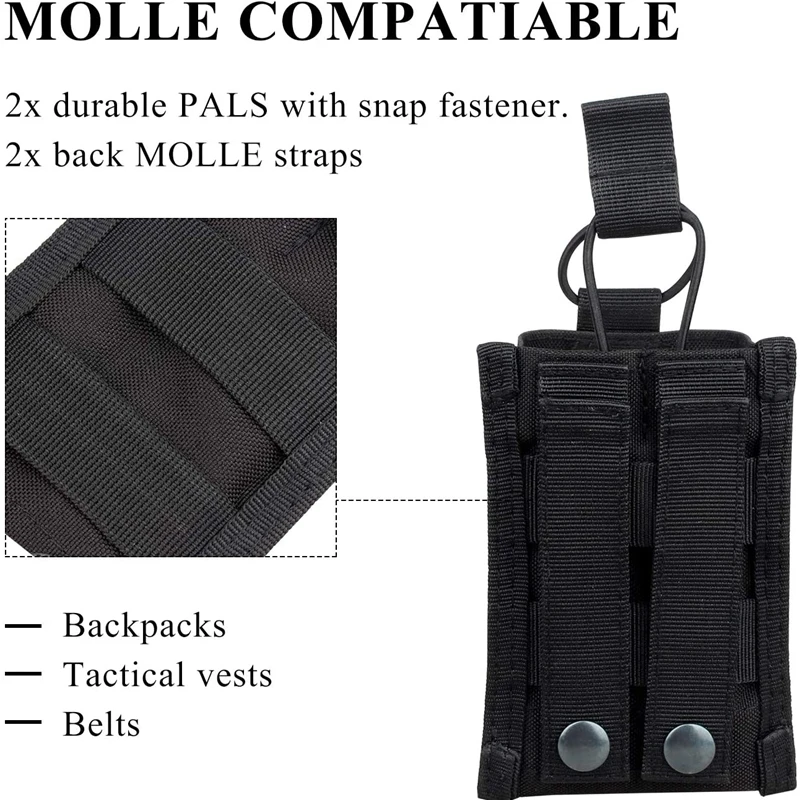 【Se adapta a 】 En la parte delantera con 4 rondas de calibre 12/soporte elástico de cartuchos de escopeta de 20g, sostiene prácticamente cualquier 5,56/. Cargador de pila única 223, los cargadores de ajuste M4 M14 M16 se sostienen de forma segura y se despliegan de forma fácil y silenciosa bajo demanda de la bolsa de cargador doble, adecuada para la mayoría de los cargadores de rifle de pequeño calibre.