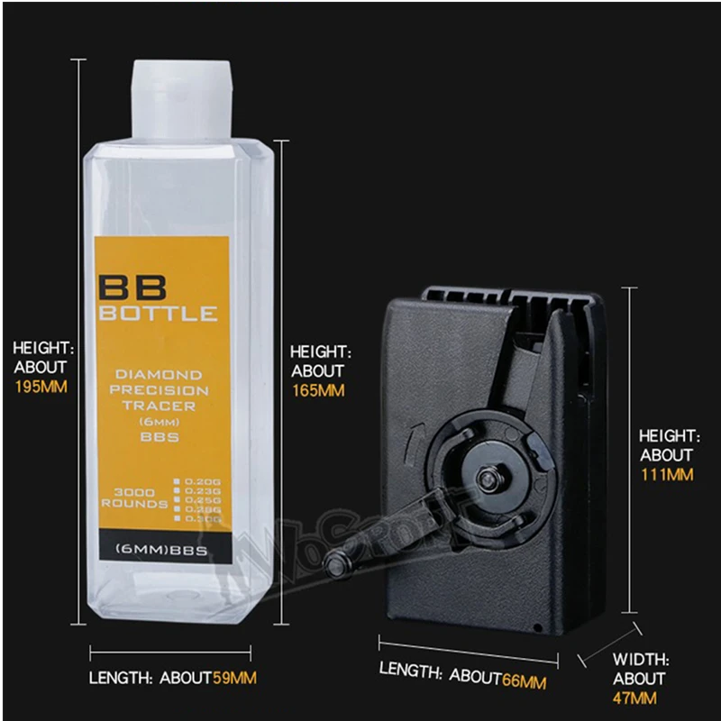 Size: speedloader 47x66x111mm, bottle 59x59x195mm