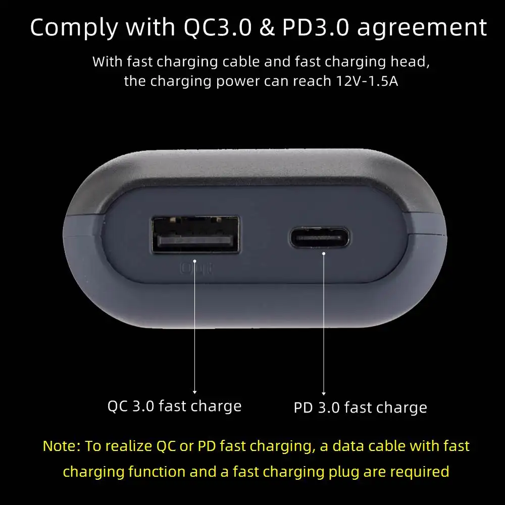Entrada: 5V/2A, 9V/2A, 12V/1,5A (QC3.0/PD3.0)