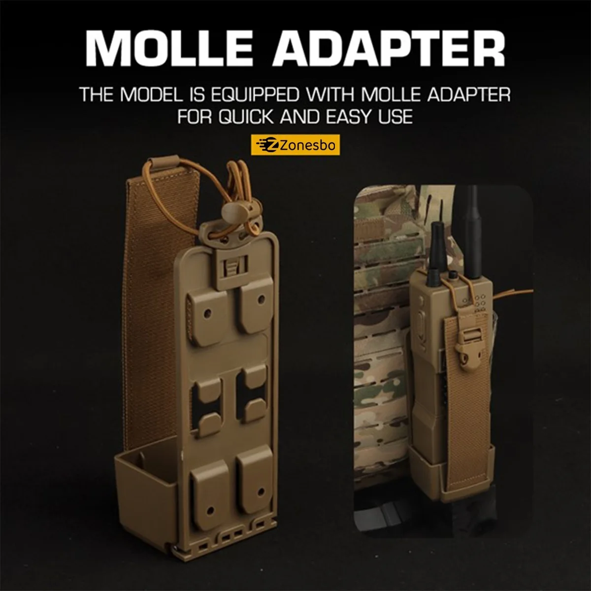 【Sistema MOLLE】El modelo está equipado con un adaptador MOLLE para un uso rápido y fácil. Se monta fácilmente en tu equipo táctico.