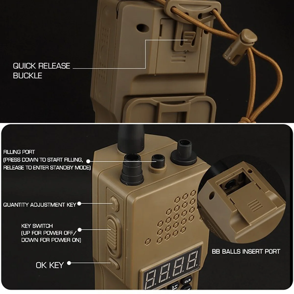 【Carga rápida】Cargador eléctrico de velocidad, más fácil y rápido que cargar cada BB uno por uno. Carga los BBs 10 veces más rápido que a mano. Pase más tiempo perfeccionando la habilidad de tiro en lugar de llenar revistas.