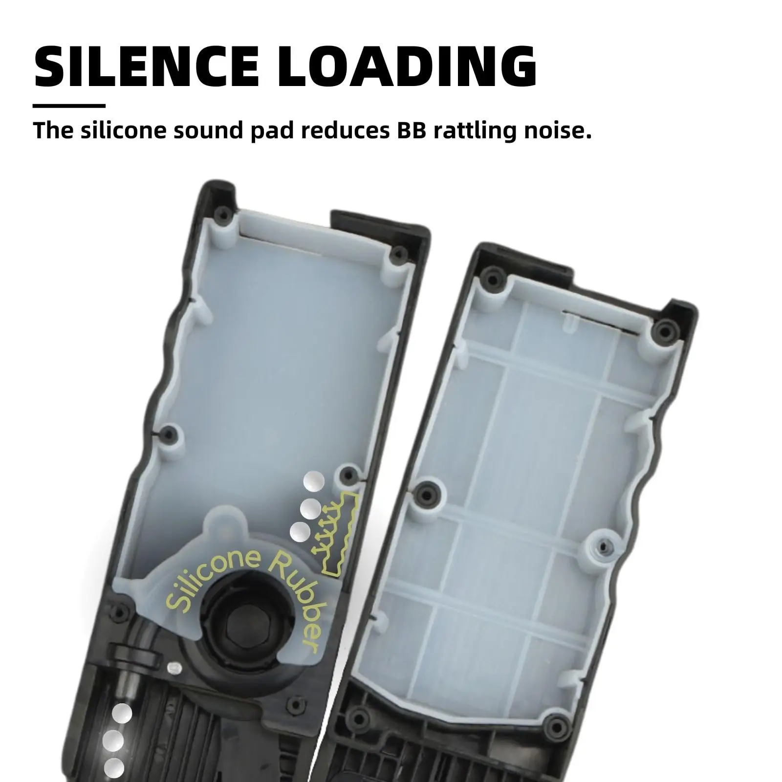 Gran Capacidad: tiene capacidad para 1000 rondas de BBs de 6mm, ofreciendo un amplio almacenamiento para cargar múltiples revistas.