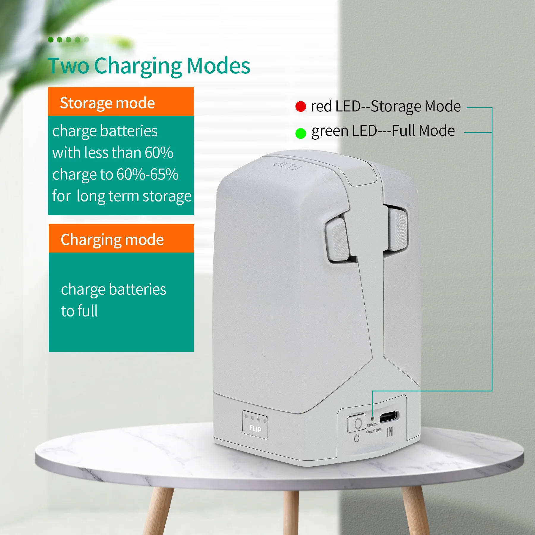 Modo de almacenamiento exclusivo, carga automáticamente baterías con menos del 60% de energía al rango de almacenamiento óptimo (60% -65%) para evitar sobrecargas y descargas excesivas, protegiendo la salud de la batería, adecuado para almacenamiento a largo plazo.La luz roja indica el modo de almacenamiento, la luz verde encendida significa carga completa, clara de un vistazo.