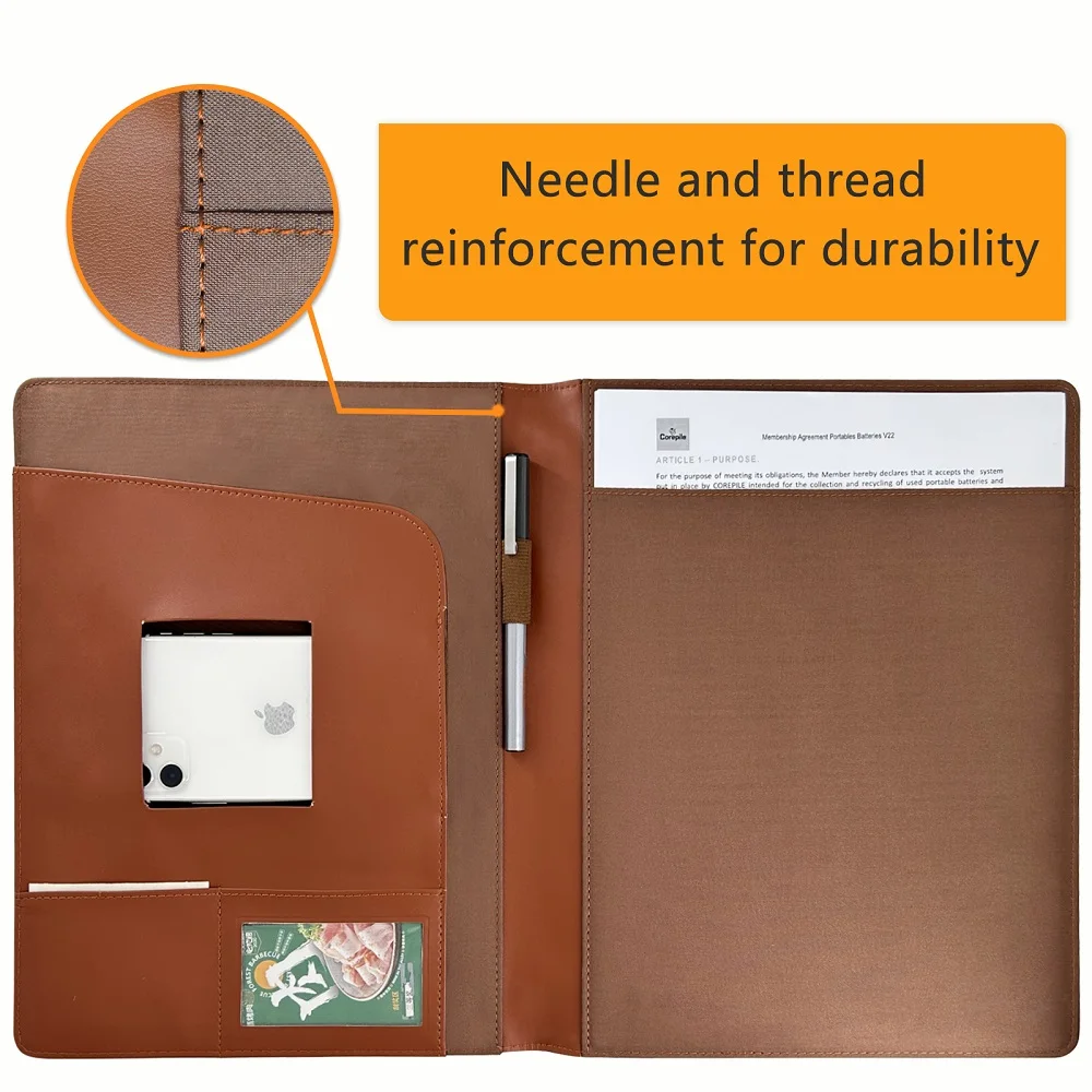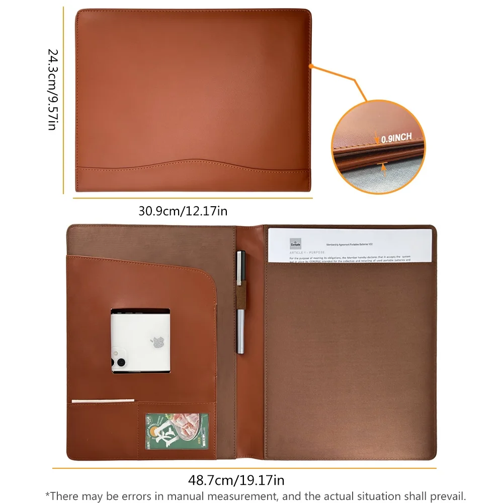 【Organizador de documentos multifuncional】La cartera de cuero es lo más grande posible para ser cómoda, funcional y elegante.Puede contener un iPad, un bloc de notas, archivos en el lado derecho (bolsillo horizontal) o en el lado izquierdo (patapa vertical), suministros de oficina como clips, tijeras, etc., correo, blocs de notas, puntos específicos en el lado izquierdo para tarjetas de visita, tarjetas de identificación y licencia de conducir también.