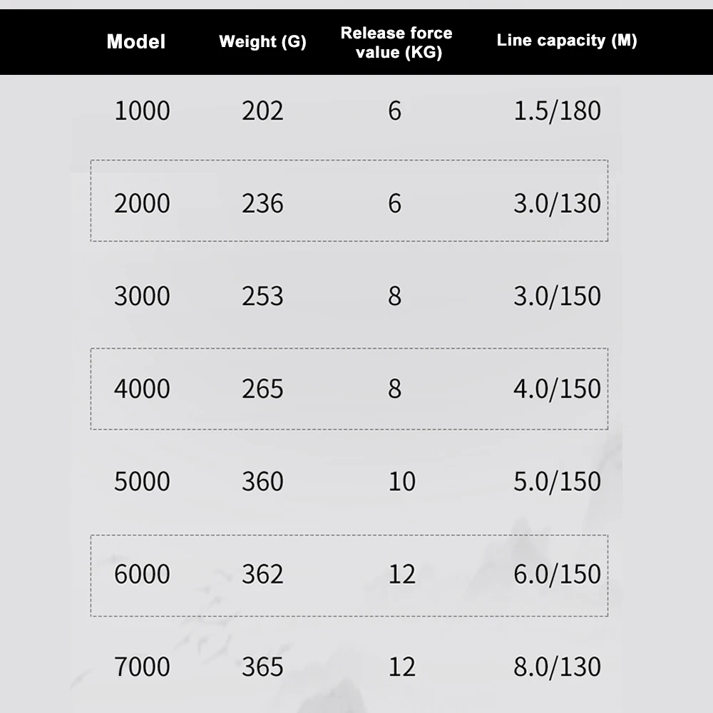 2.Múltiples modelos con distintos diámetros y capacidades de línea se adaptan a diferentes líneas y escenarios de pesca.