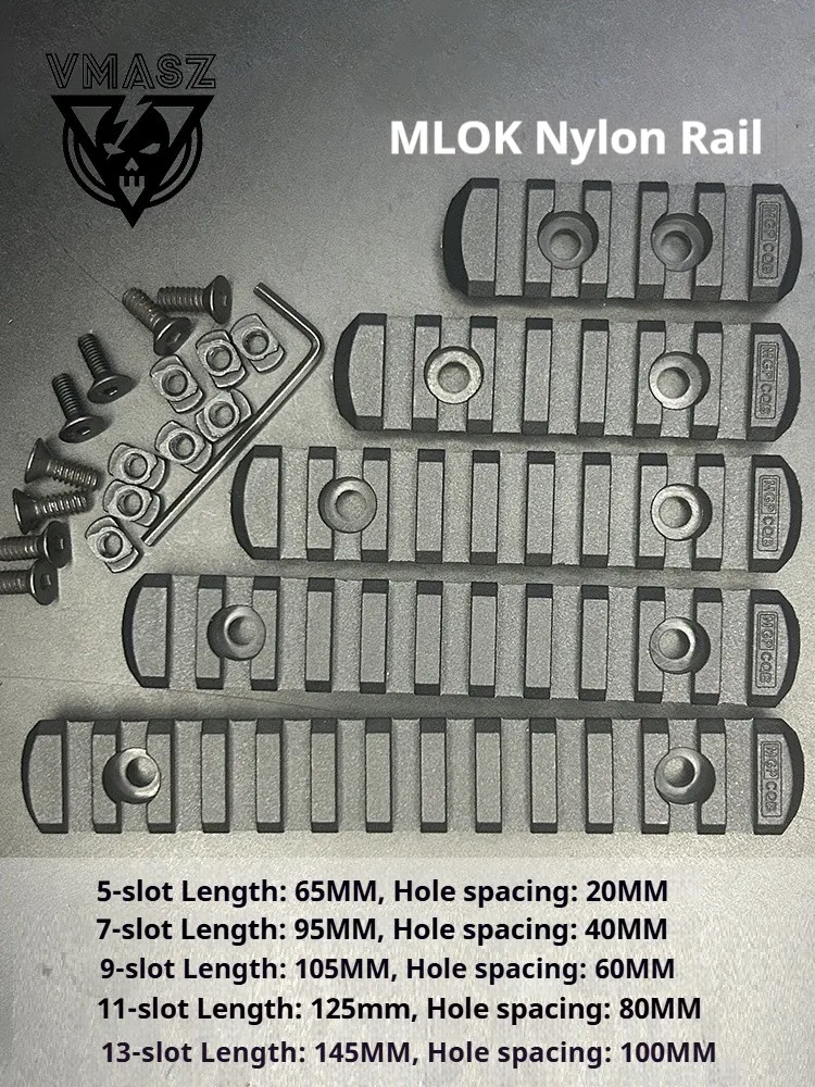 Carril guía de nailon Element MLOK con tiras de madera en forma de pez, riel guía metálico ajustable de 20 mm con diseño de espina de pescado.