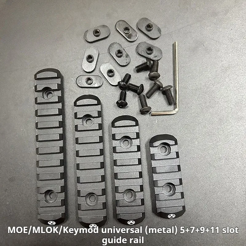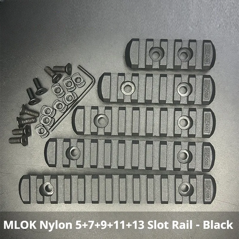 Carril guía de nailon Element MLOK con tiras de madera en forma de pez, riel guía metálico ajustable de 20 mm con diseño de espina de pescado.
