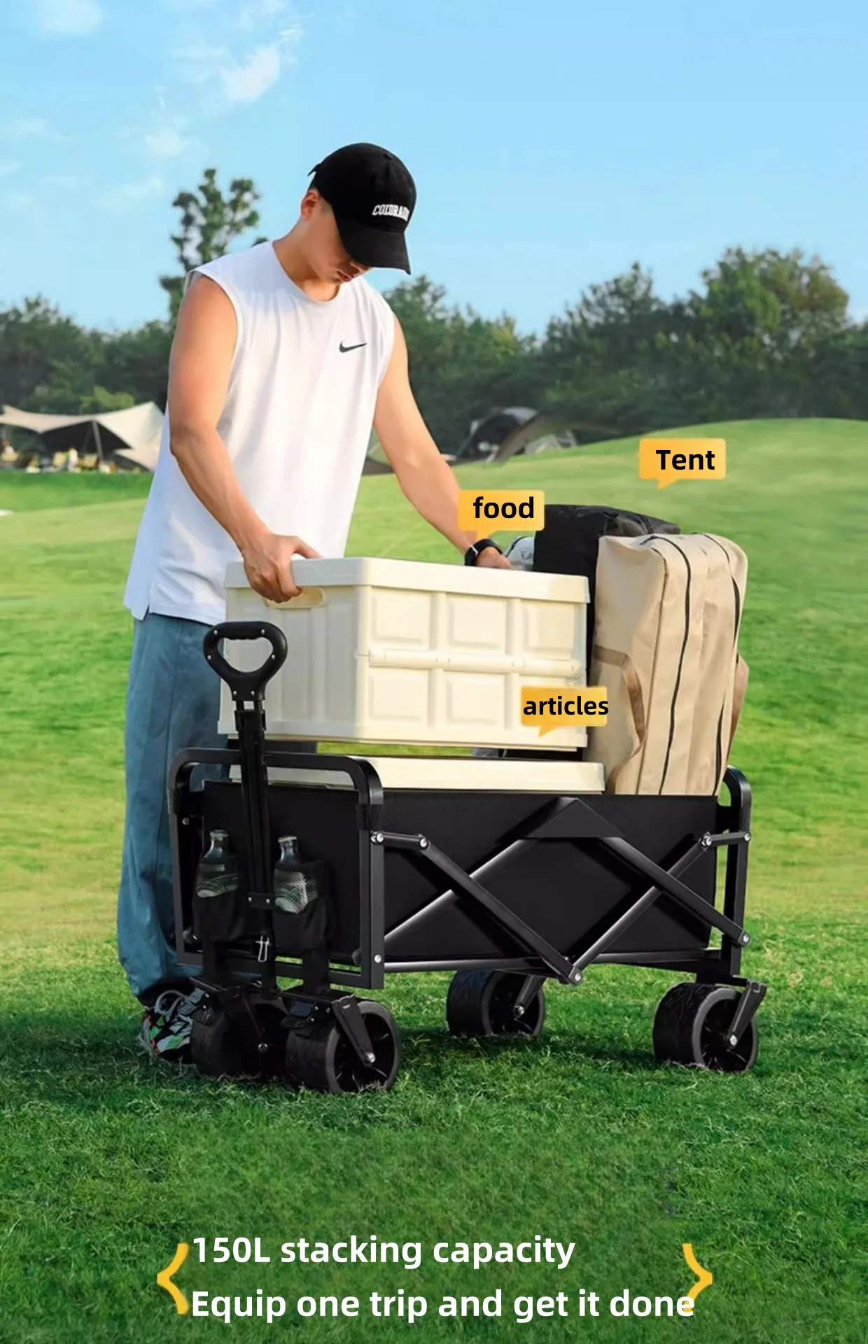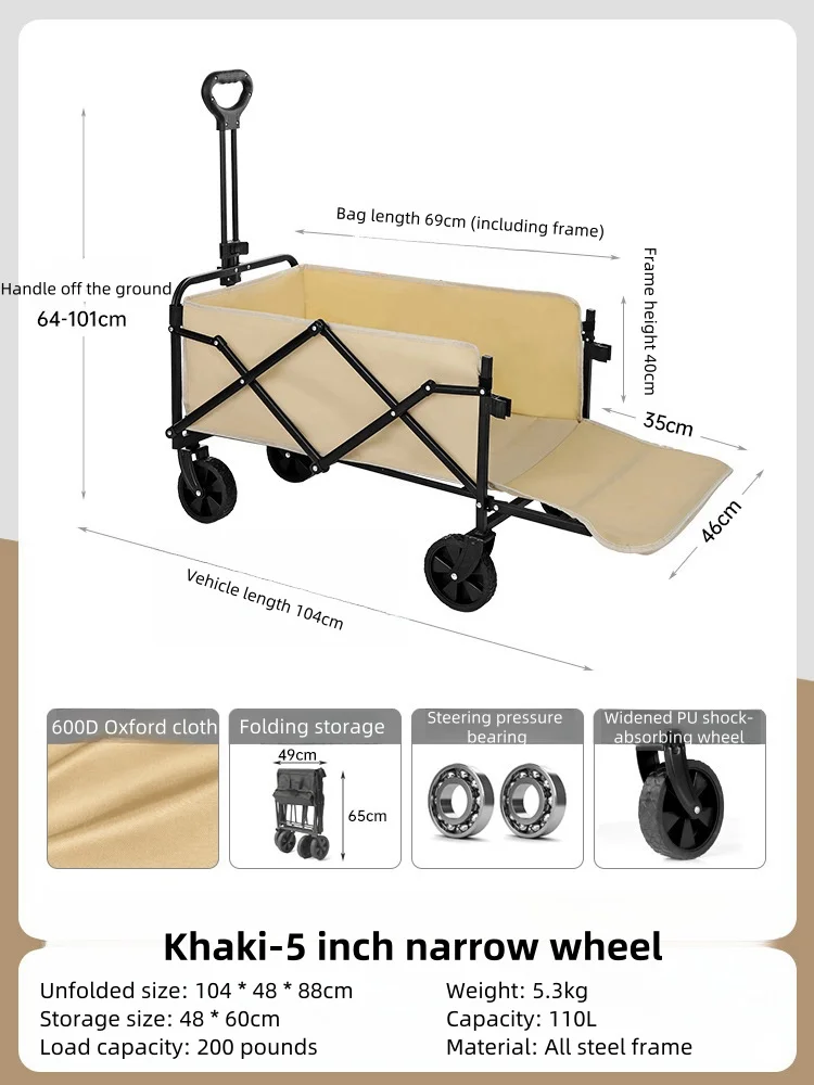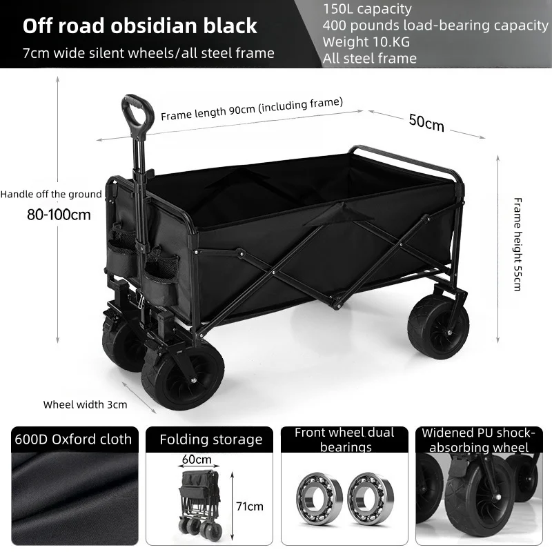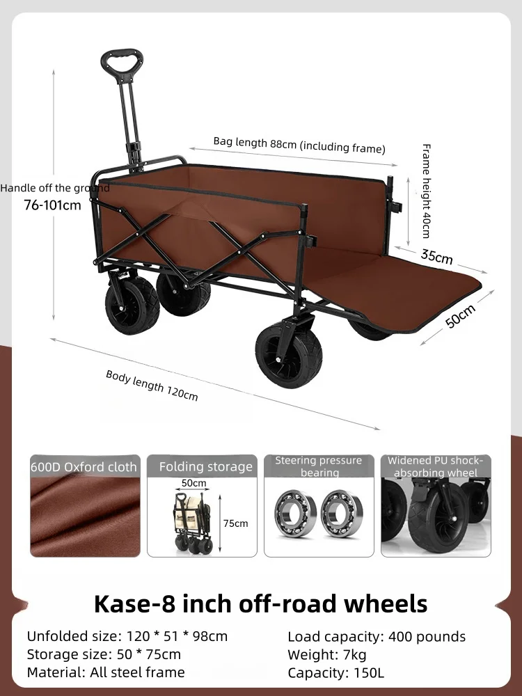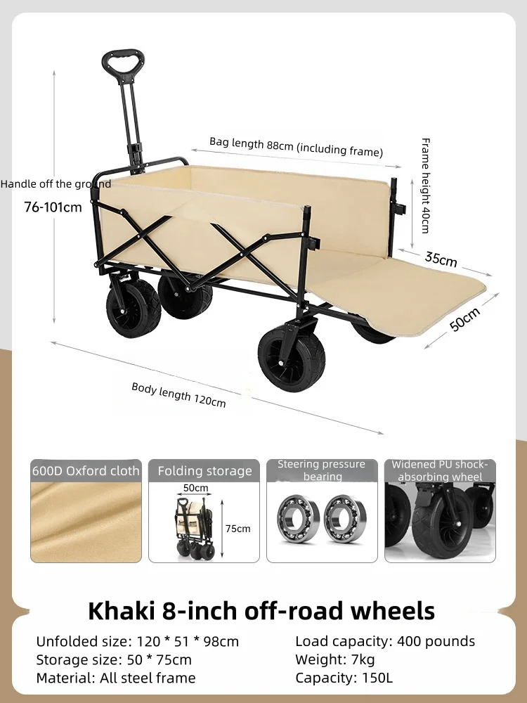 Carrito de camping al aire libre para niños, Puede tumbarse Carrito de acampada que reúne ruedas todoterreno Carrito de acampada, juegos de puestos y plegable, s