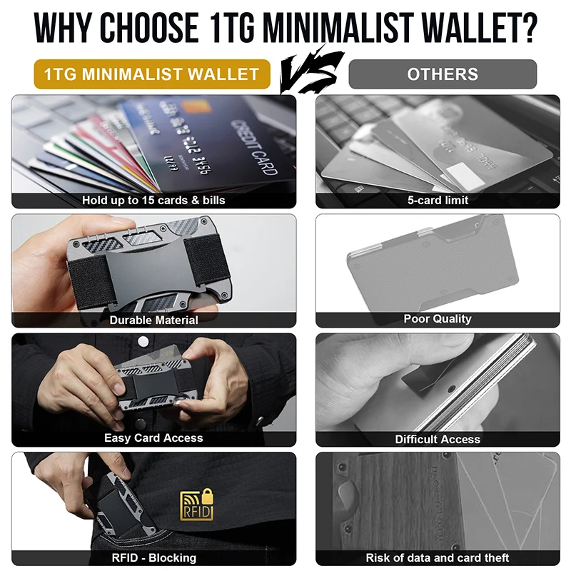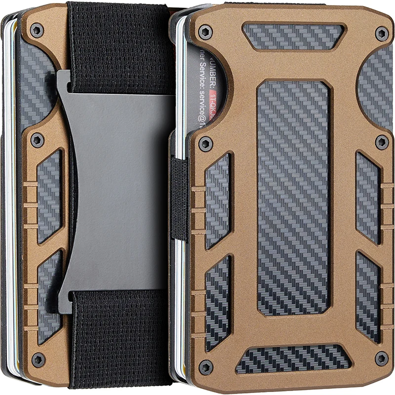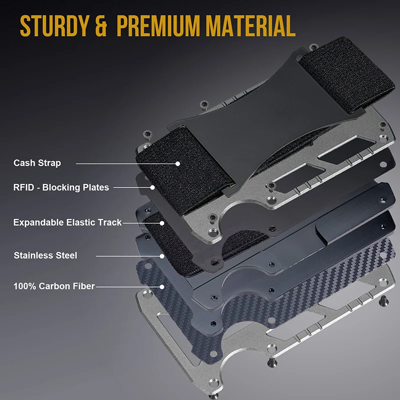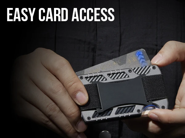 ● [Bloqueo RFID]: Debido a que sus tarjetas estarán rodeadas por el cuerpo metálico de esta billetera, la tecnología de bloqueo RFID incorporada protege sus tarjetas de crédito de los ladrones utilizando dispositivos de escaneo que pueden intentar robar la información de su tarjeta de crédito.