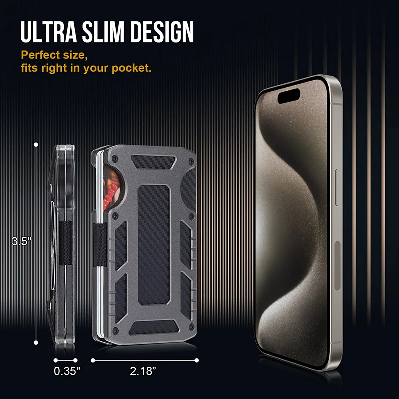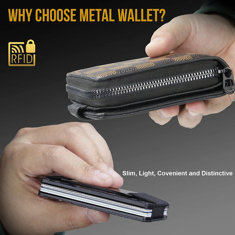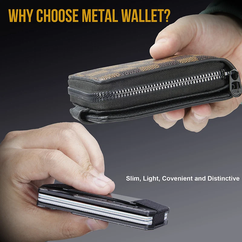 ●[Nueva billetera delgada]: la billetera está hecha de materiales de aleación de aluminio de mayor calidad.La apariencia elegante y fresca, el cuerpo delgado y liviano, el diseño elegante y la estructura metálica de alta calidad lo hacen más resistente a los rayones, conveniente y duradero.