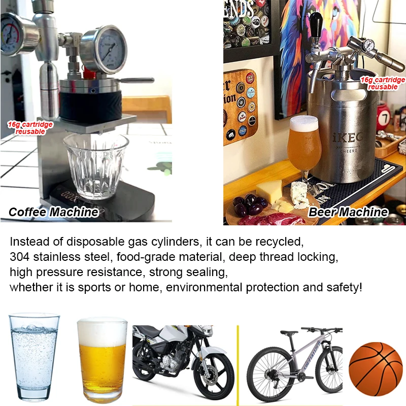 Cartucho de Co2 recargable 3/8-24UNF roscado para el hogar Homebrew Soda cerveza Bola de jugo recargable reutilizable chaleco salvavidas neumático