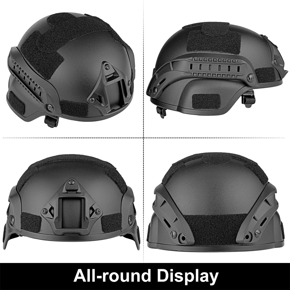 Casco Airsoft MICH negro Con pasamontañas elástico, máscara y gafas antivaho para Airsoft Protección facial táctica completa para caza al aire libre