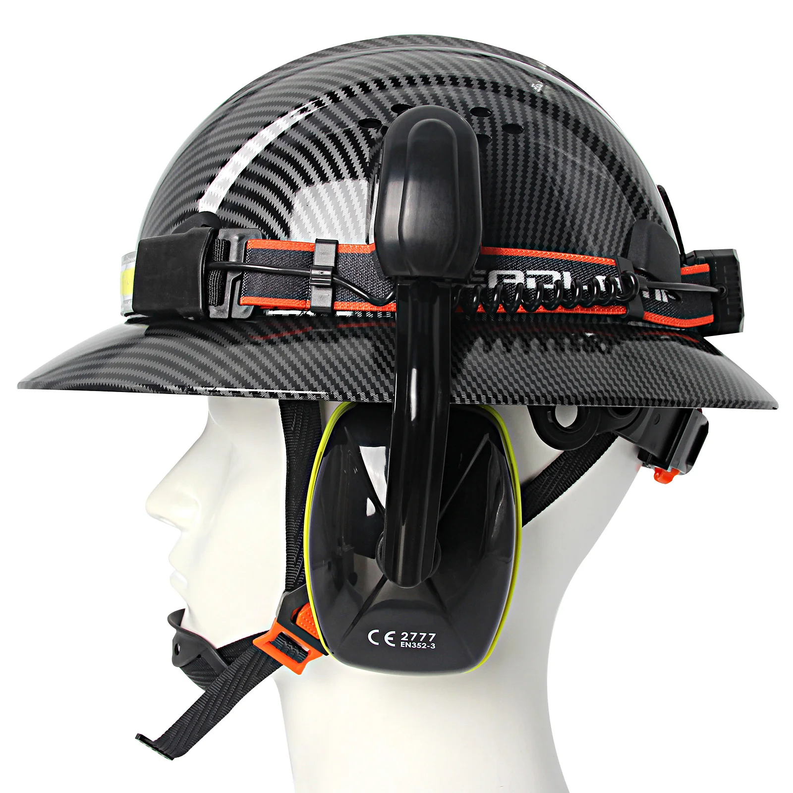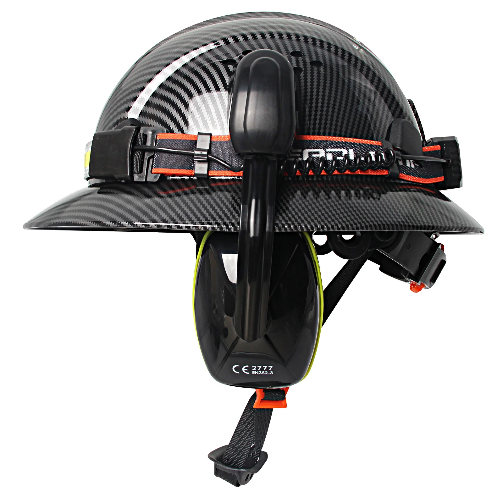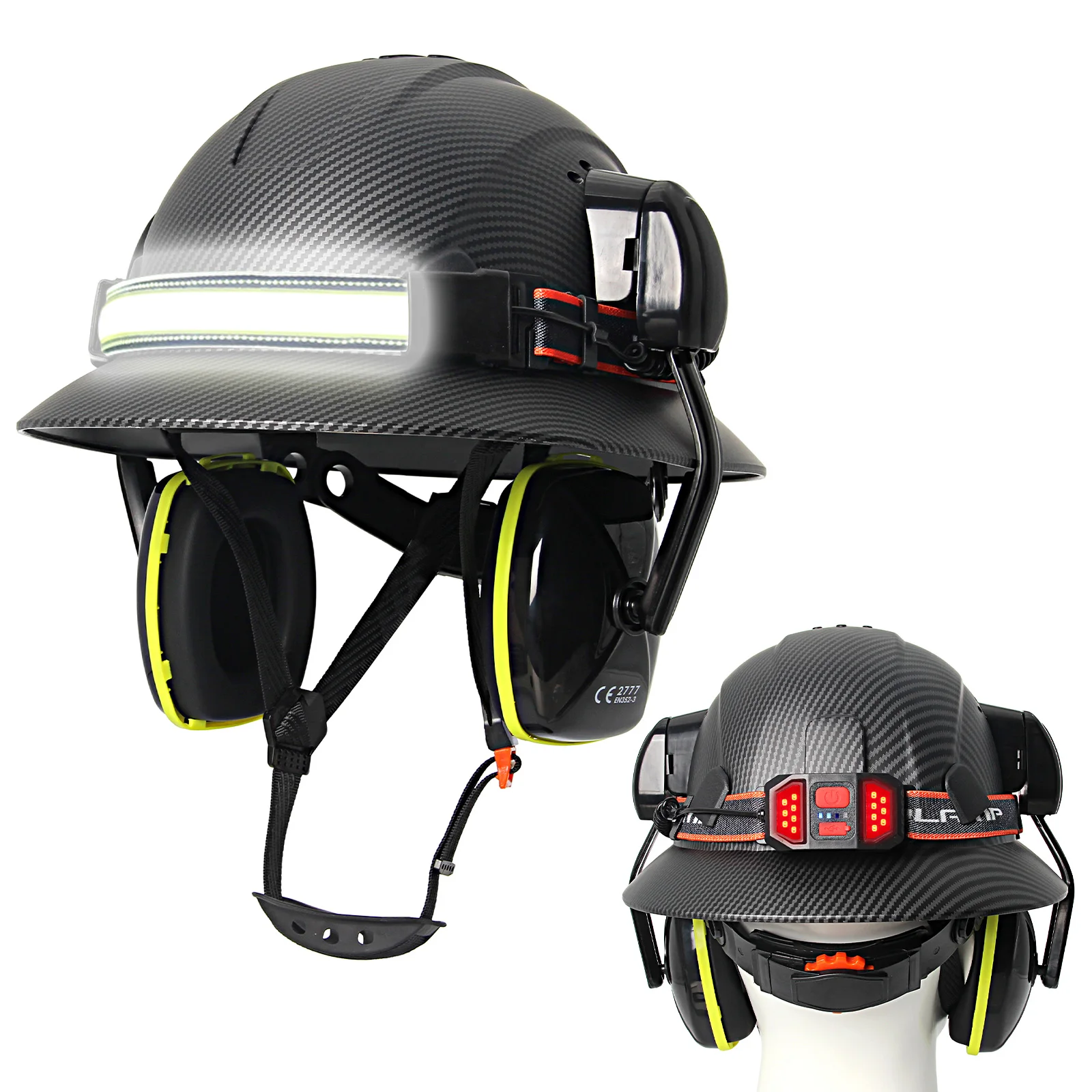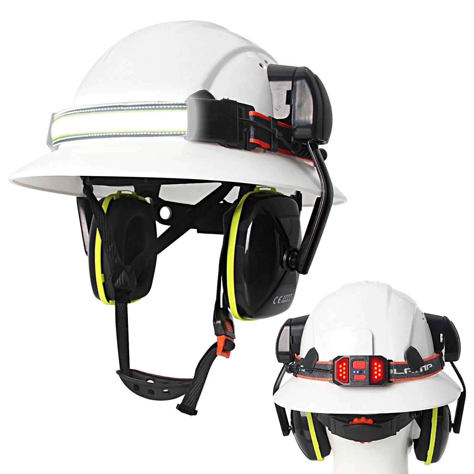 Casco de ala completa CE con orejeras, lámpara para la cabeza, cascos de seguridad anticolisión para construcción, gorra de rescate de trabajo ligera ANSI