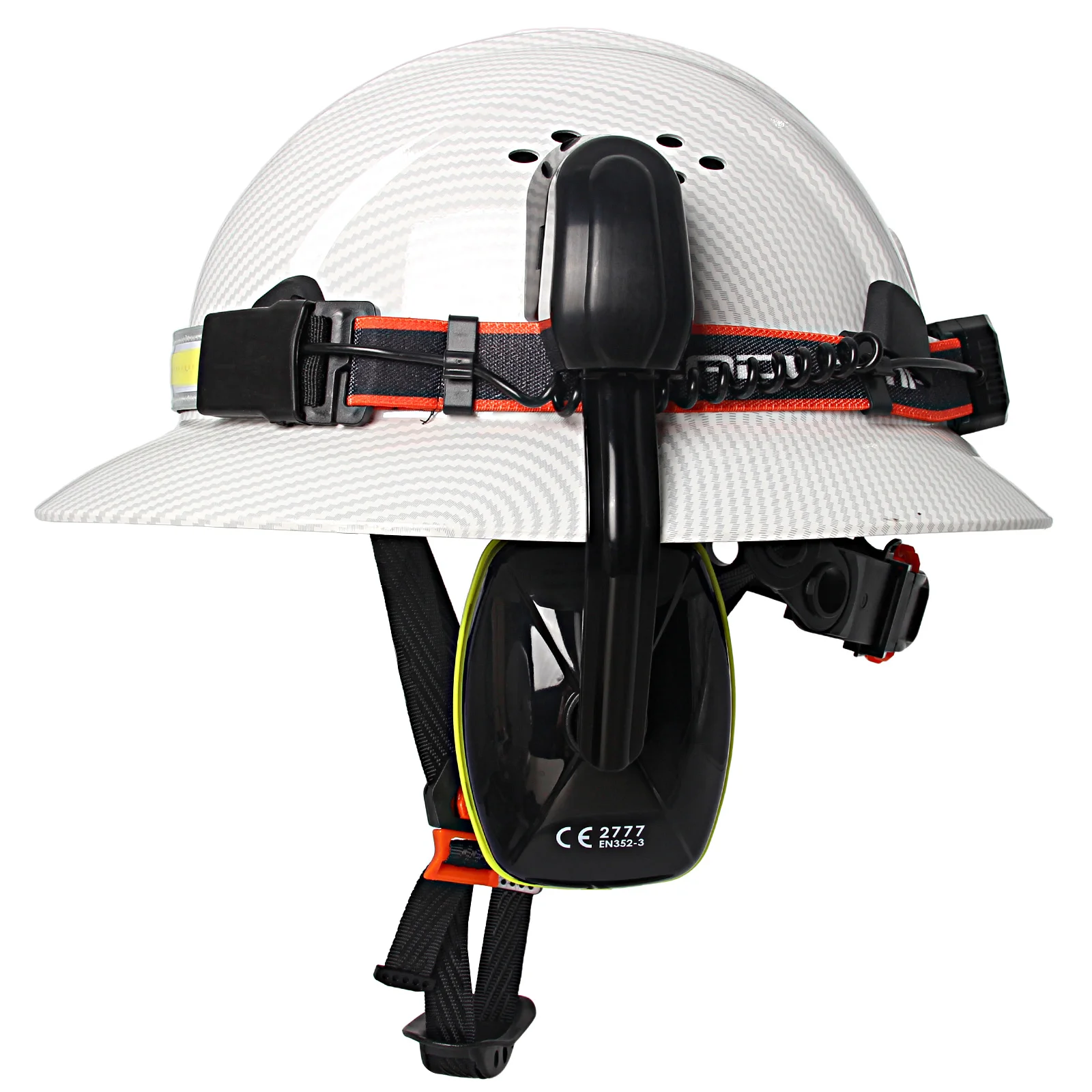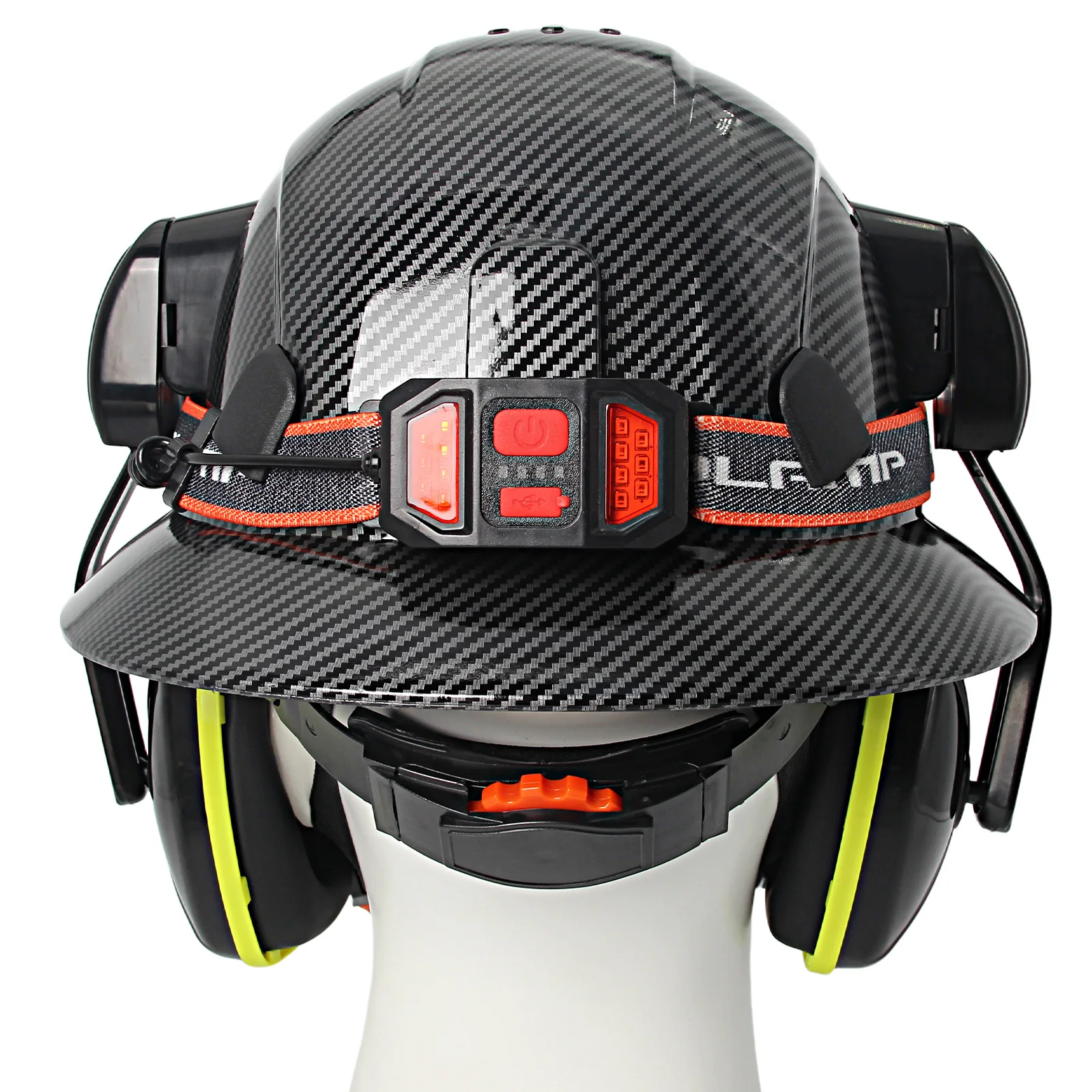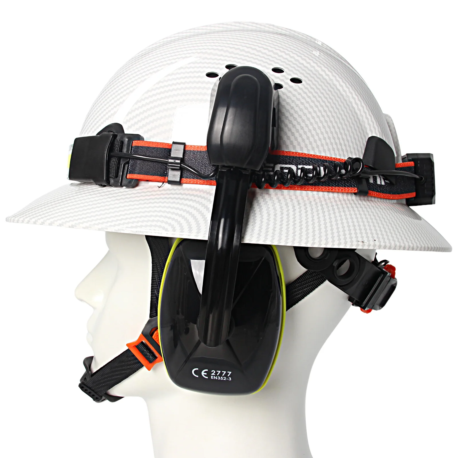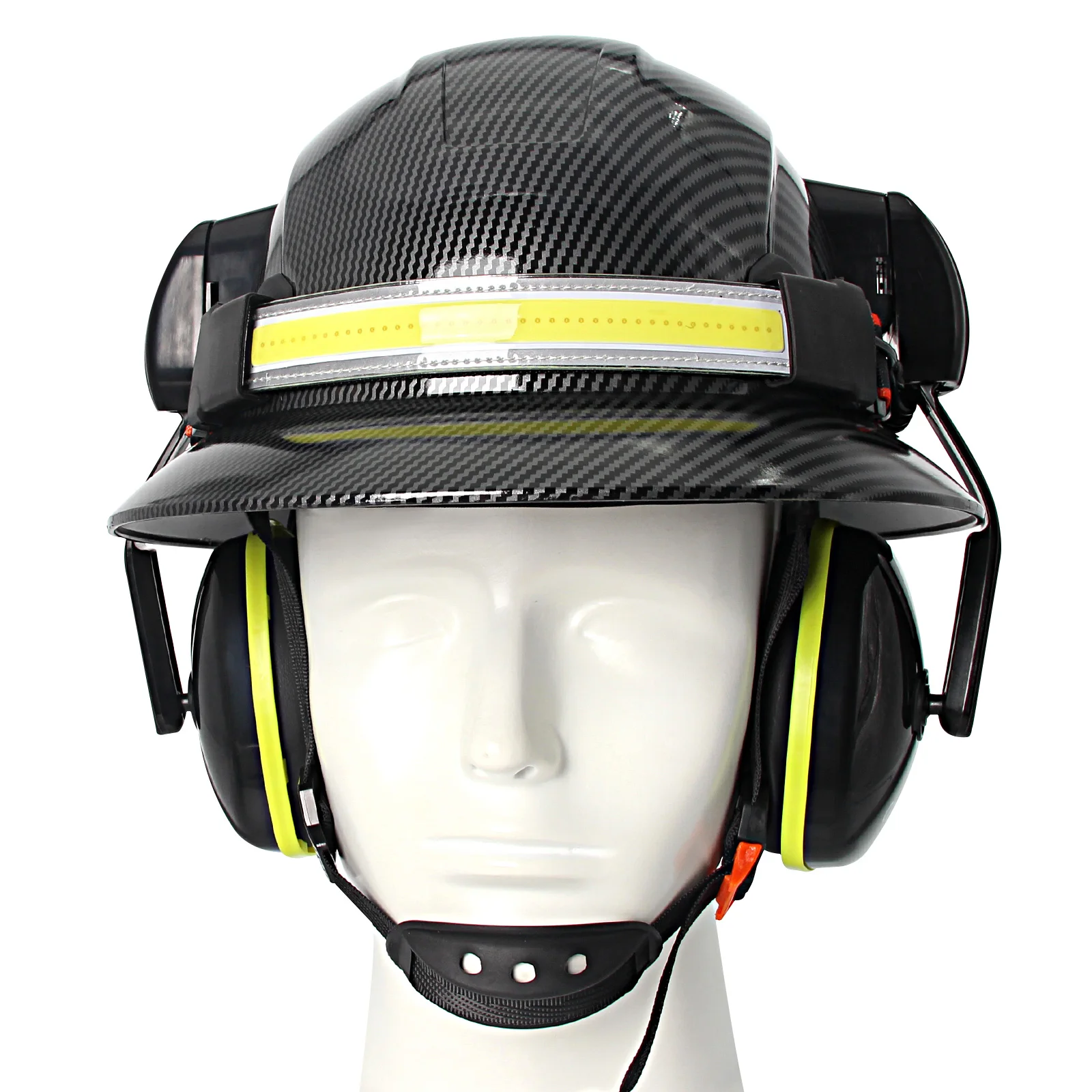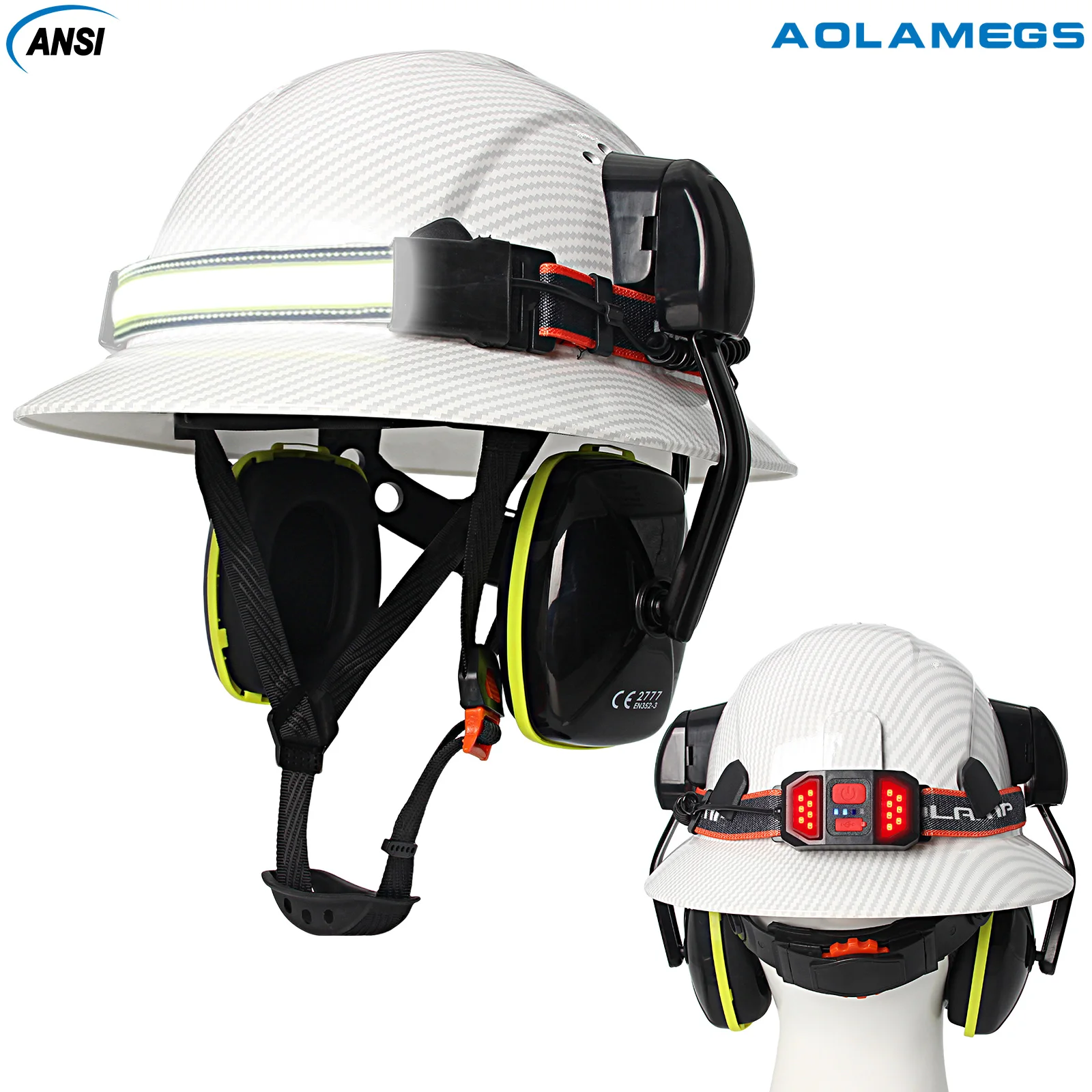 Casco de ala completa CE con orejeras, lámpara para la cabeza, cascos de seguridad anticolisión para construcción, gorra de rescate de trabajo ligera ANSI