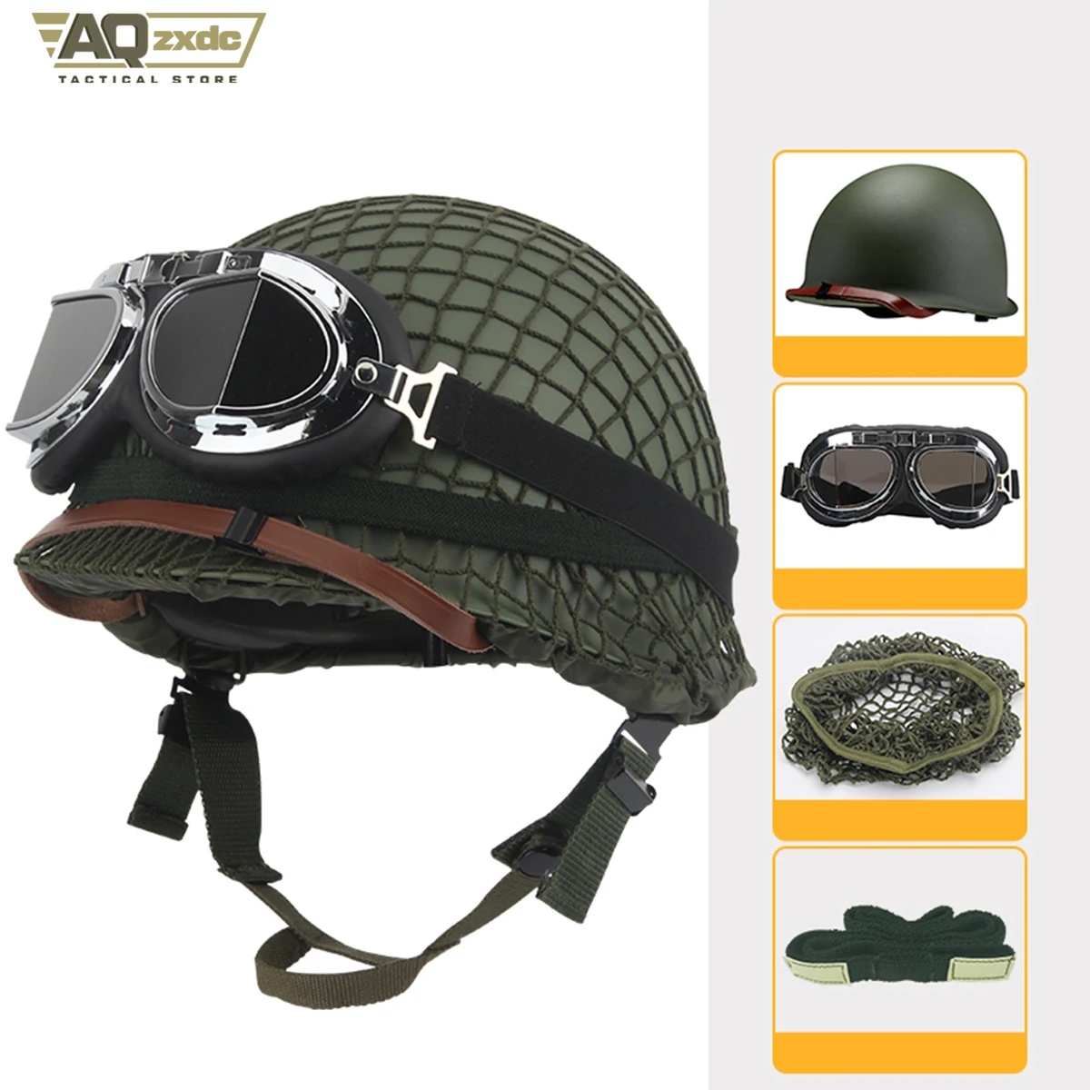 Casco americano M1 de acero de doble capa, ventilador militar de aleación de acero, casco táctico especial para cine y televisión, campo de equitación
