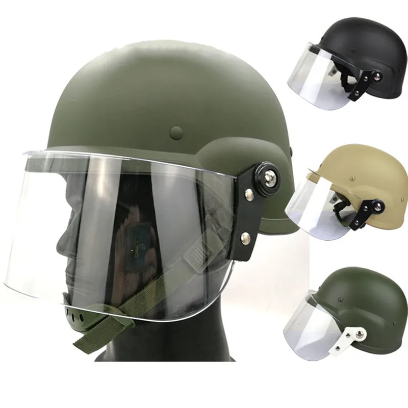 Casco antidisturbios, ventilador militar, protección táctica, autodefensa, protector facial transparente para adultos, casco de seguridad a prueba de viento
