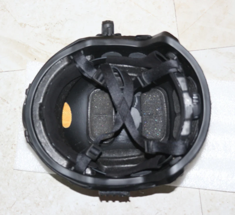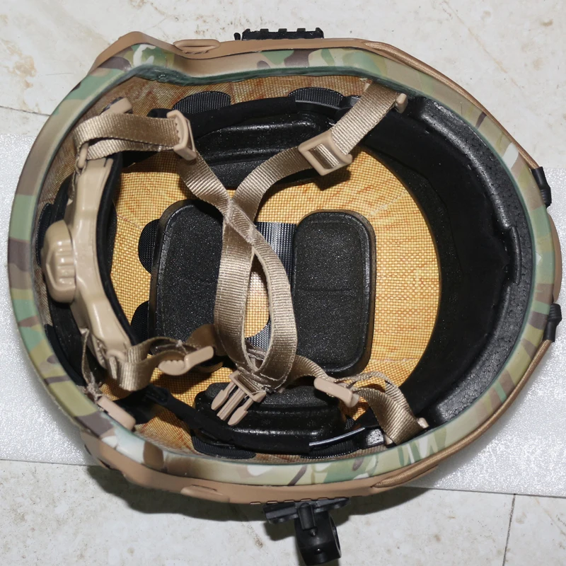 Preparación del casco: riel 2 (Nailon), calamar seco 1 (aleación de aluminio), hebilla de gafas 2 (Nailon), Velcro 5 (Nailon), esponja acolchada y esponja de memoria sísmica 5 (EPP), sistema de suspensión ajustable OPS, correas (poliéster de filamento), cordón 2 (banda de goma elástica), ribete 1 (goma integrada), Mentonera 1 (cuero), accesorios (soporte de linterna 1, espina de pescado 1, deslizador 2)