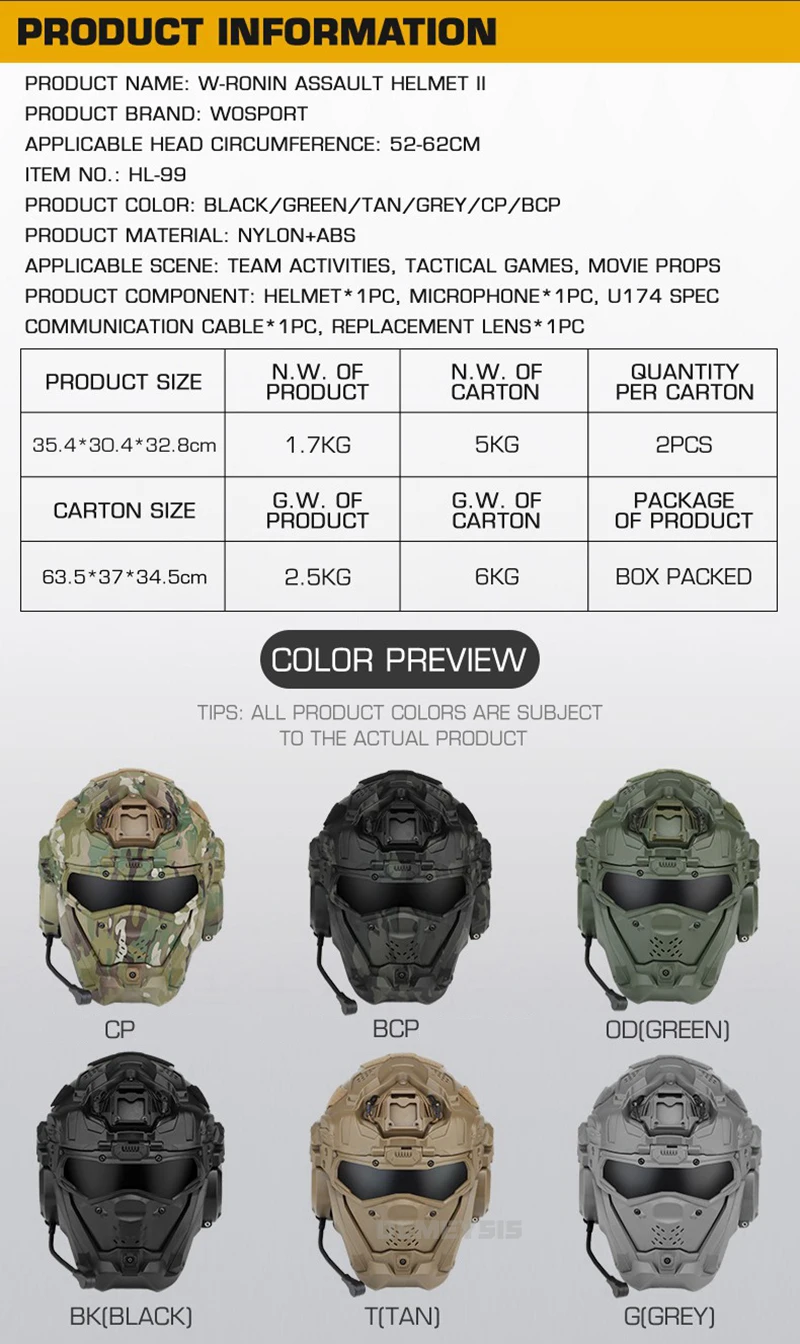 ✔ Tamaño: Cabeza de 52-62 cm| Colores: Negro/Verde/Tanado/Gris/CP/BCP