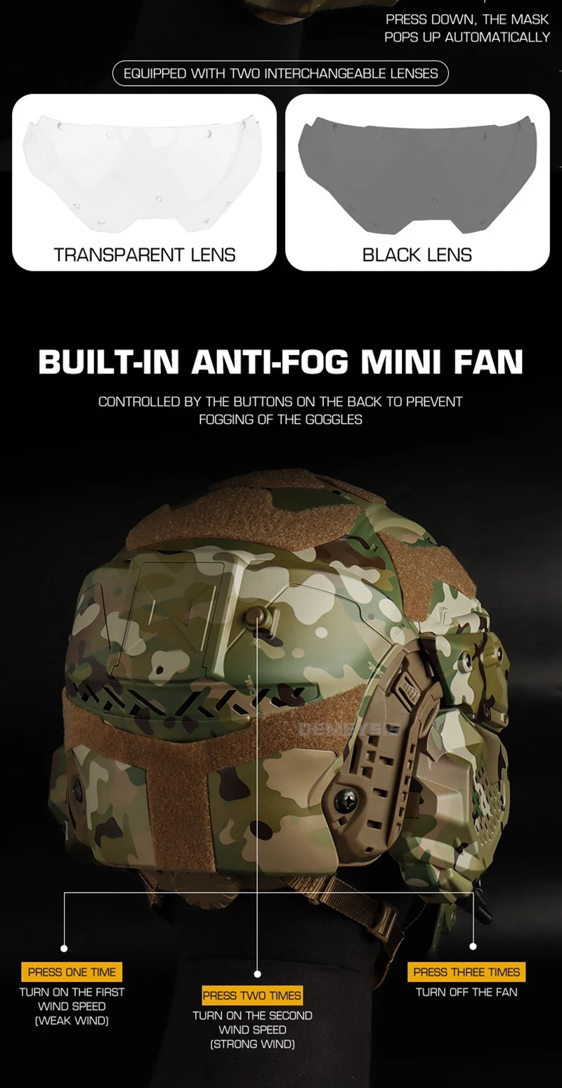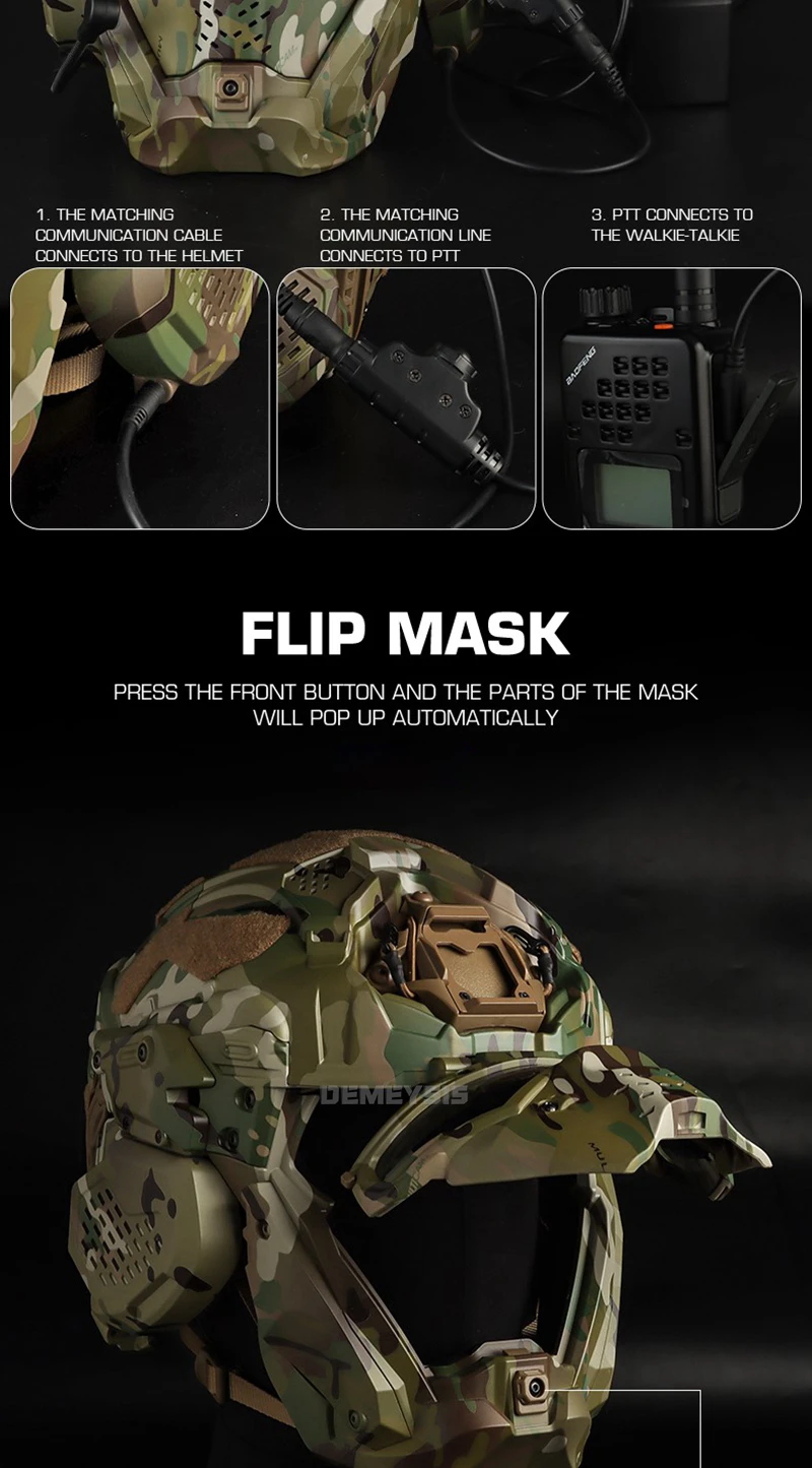 ⚡ Máscara Auto-Flip – Liberación con un solo toque + lentes duales