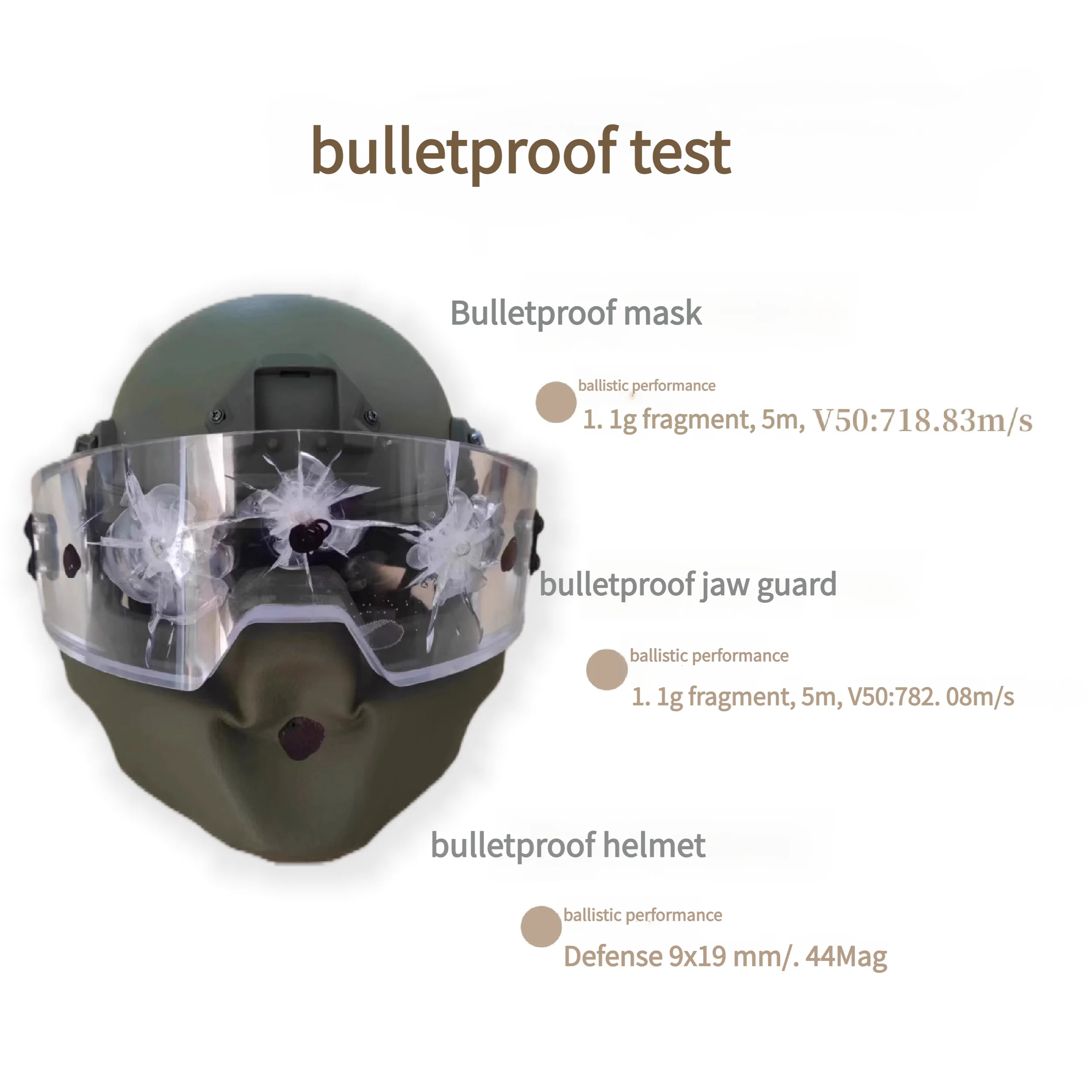 Carcasa/Protector facial inferior: Detiene 9 mm y.44 Magnum, V50 ≥ 800 m/s